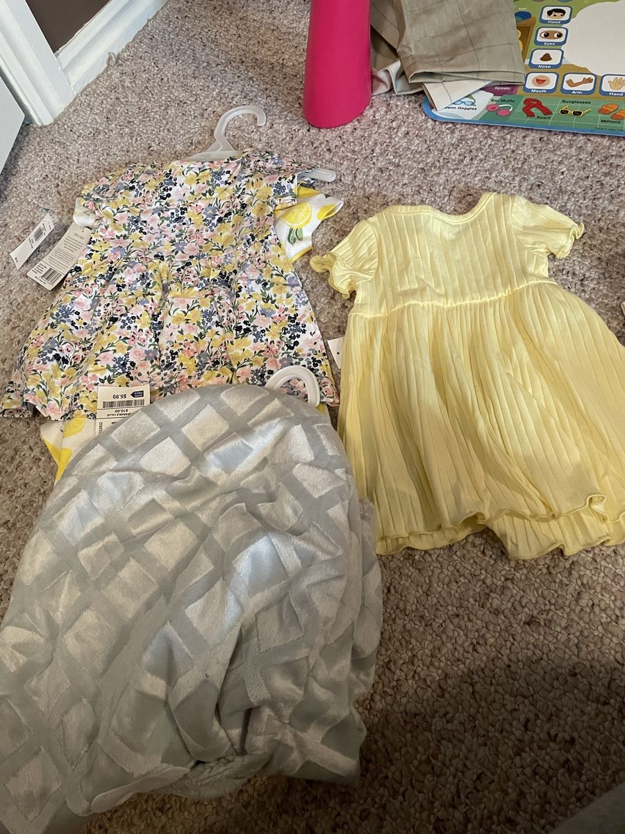 VenmoBrand new Gap 0 to 3 month girl dresses. A set of two dresses (Lemon and flower)= $6 (bought for $8) and then a single yellow dress.= $4 Swaddling sac= $5 All 4= $13