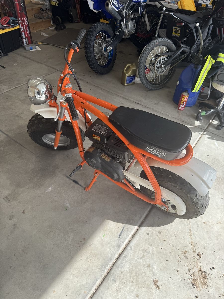VenmoFun orange Coleman BT200X mini bike. Fires up easy and only used e free gas