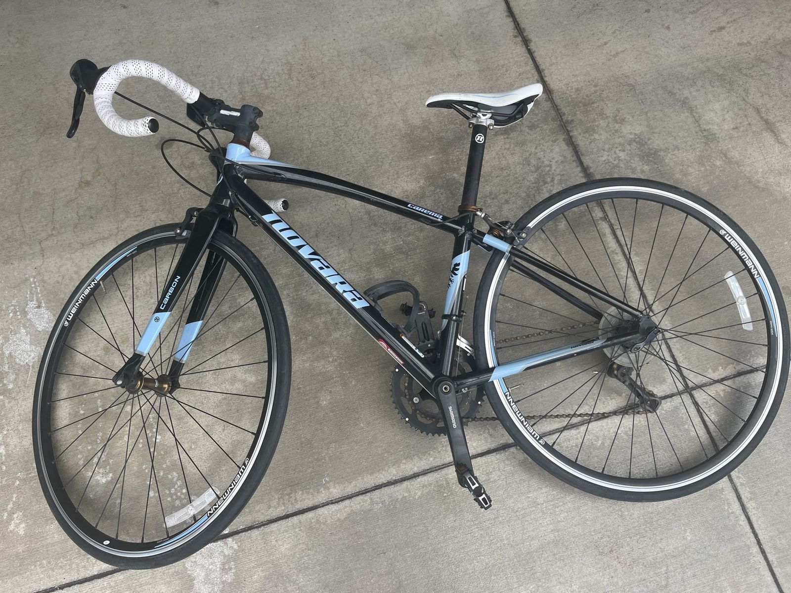 Novara carema road bike size small frame 15” carbon forks shimano works and rides great.
