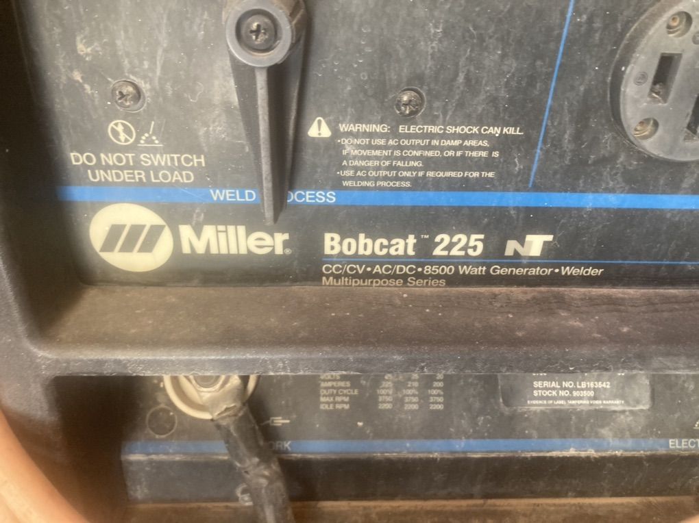 I’m selling my Miller bobcat 225 generator and welder combo. Low hours for its age. I’ve probably put less than 100 hours on it in 8 years. I’m not sure the age as it was used when I bought it. Starts easy, runs well and needs nothing. It did get a fresh air filter, oil filter and oil a couple months ago. Leads are included. Onan 16hp gas engine. Asking $3000