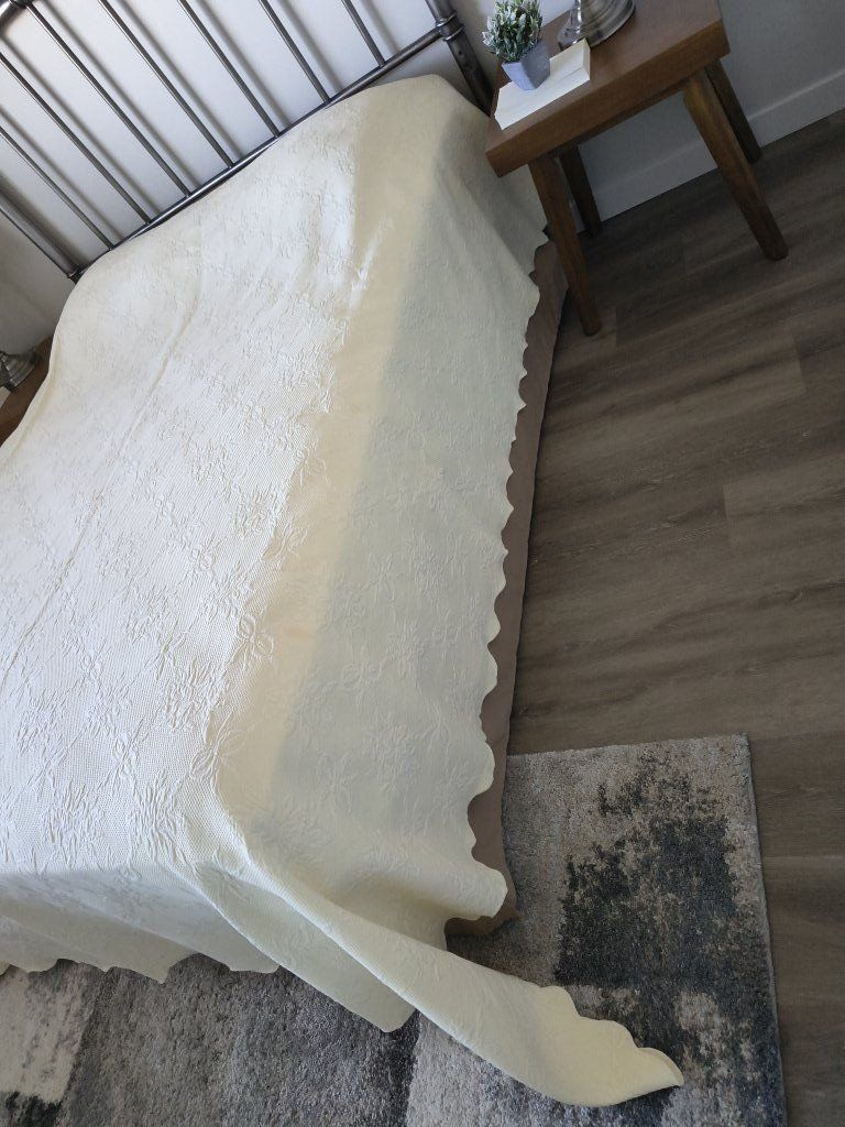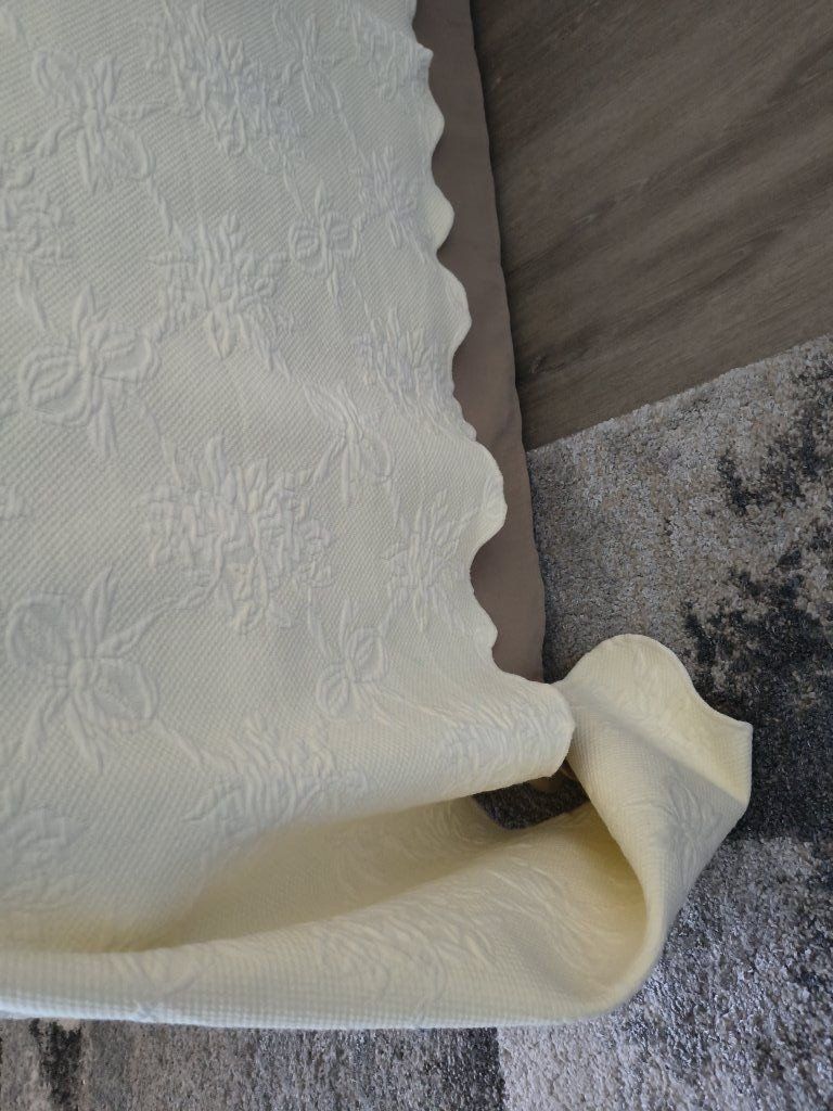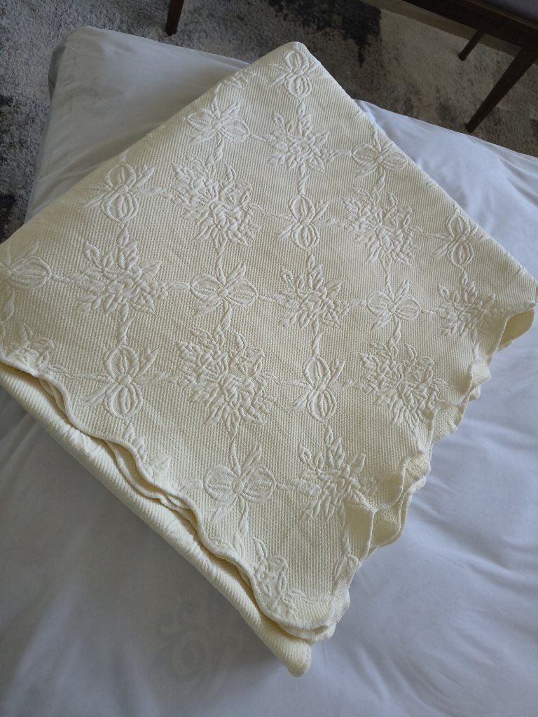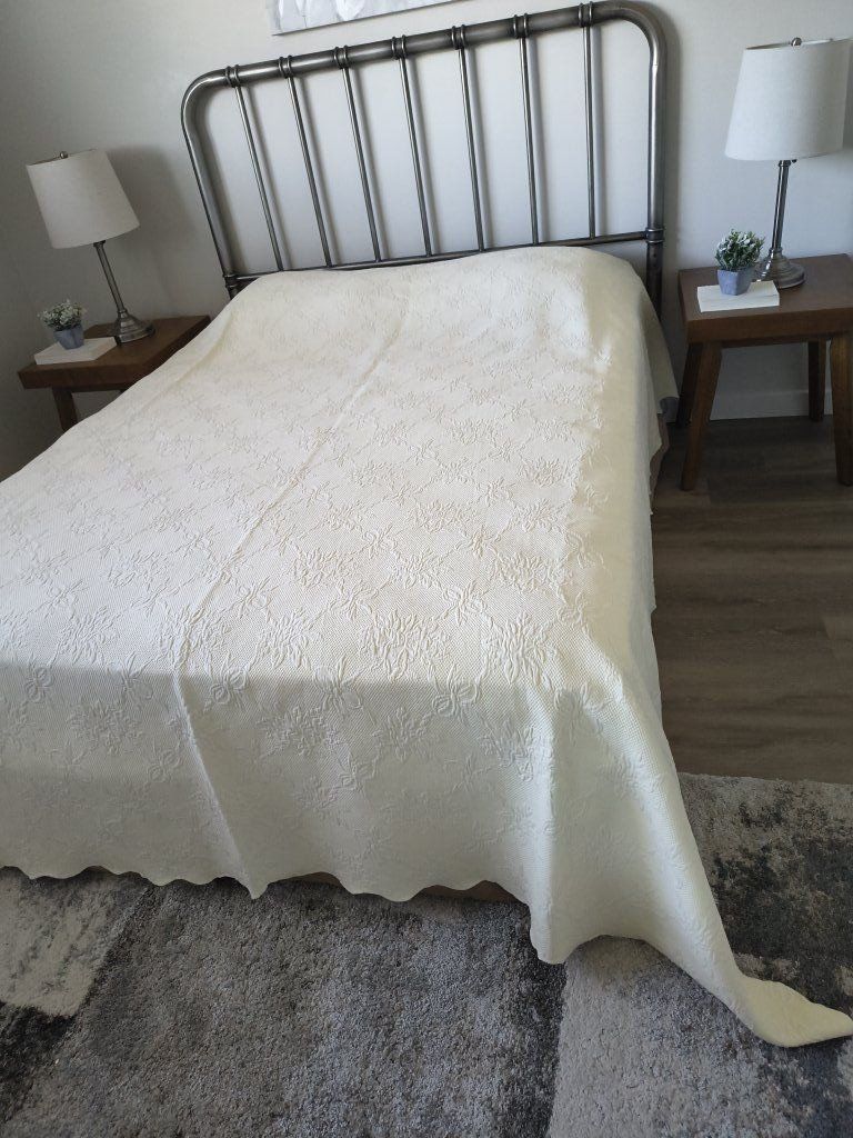 Vintage matelasse coverlet cream color or light yellow cotton bed spread, King size, smoke and pet free home, $55.00 cash or Venmo.