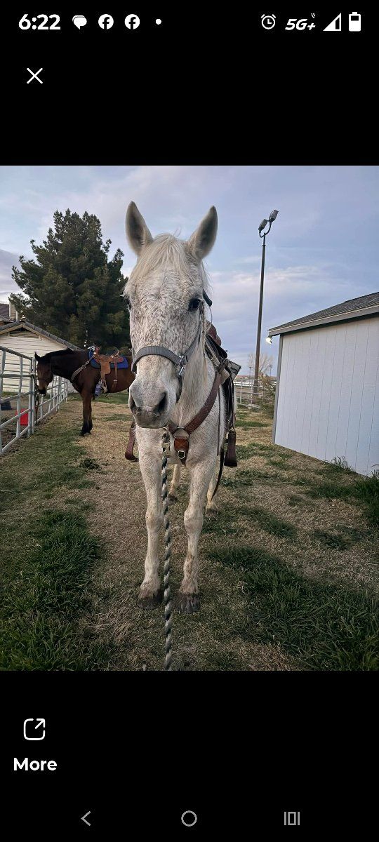 Frosty is looking for a new home with an experienced rider. I got him on a trade and I can tell that he is not the right horse our family. I was told that he belonged to a young girl and that he has whoa than go, no buck or rearing. He crosses water, not is not scared of motorcycles and 5hings 5hat tend t9 be scary for a horse (he really is not spooky) and great for trail riding. I have video of him being ridden, but have not ridden him myself. To start with, his ground manners were not great. I have been working with him and he is improving alot. He is very smart. But he was not supposed to be a project horse. If I had the time I would keep him and retrain him. I really do like him, he can be really sweet, soft and responsive. But I believe he has gotten away with stuff and needs someone who wont let him be pushy and can keep him in line. He is Quarter/Arabian, no papers. He stand about 15hh. His feet were just trimmed. Please call for more info. I will gladly tell you everything I know, so that you can decide if he is the right horse for you. $2500 may consider offers.
