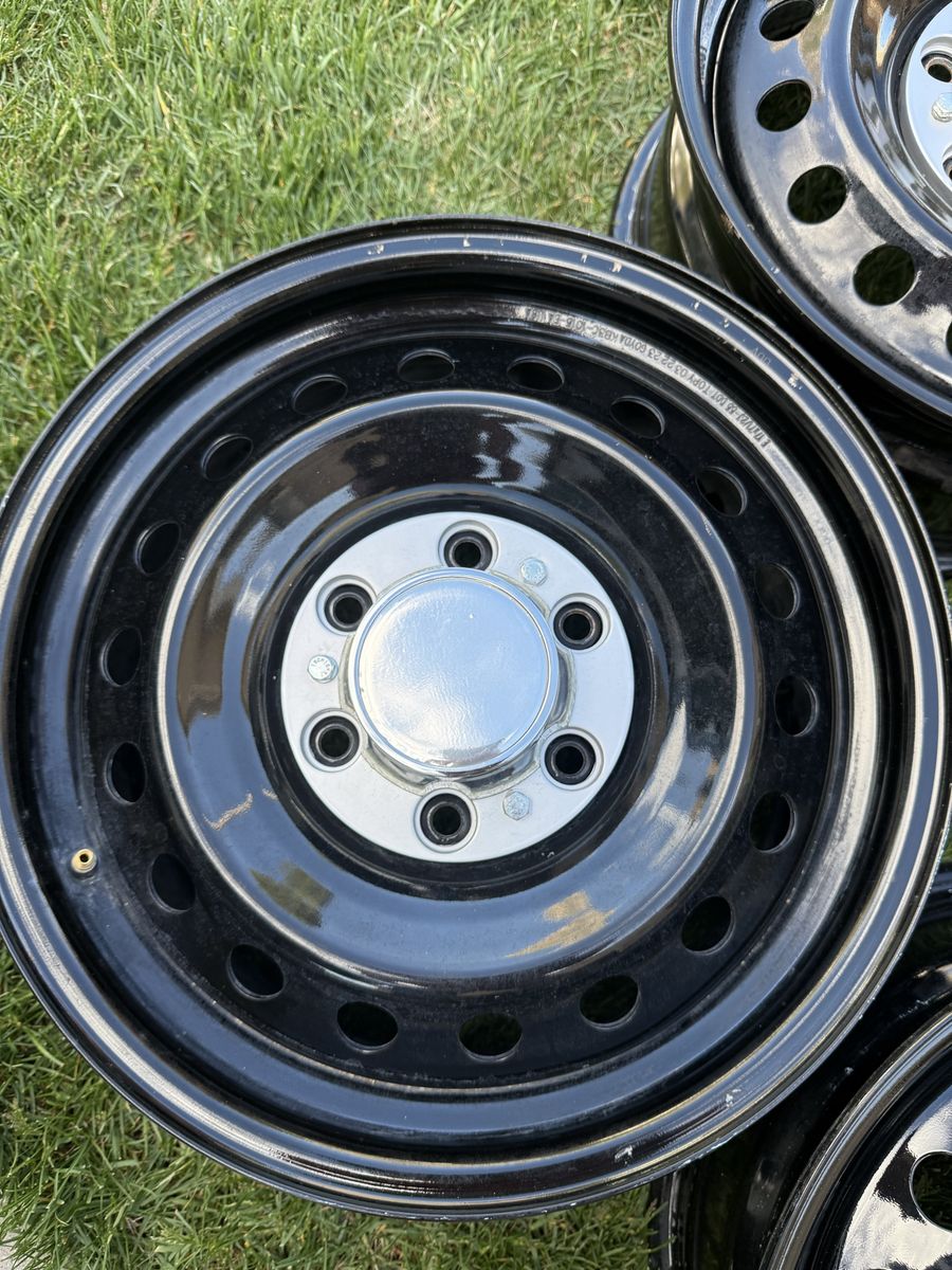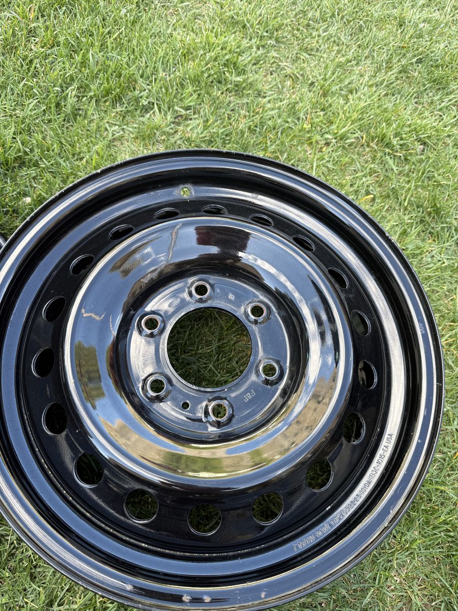 VenmoThese are a set of 5 ford Bronco black diamond steel wheels. They are 17” x 7”. They are in very good shape. And come with custom center caps, to give them a little retro look. There are only 4 caps but 4 wheels.
