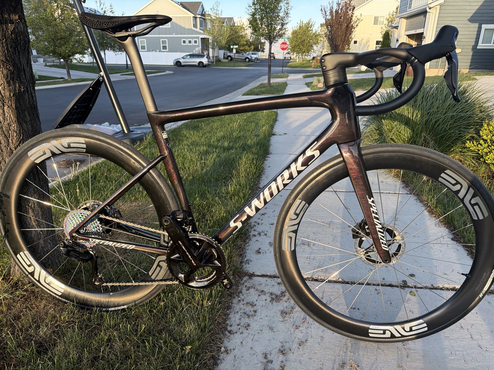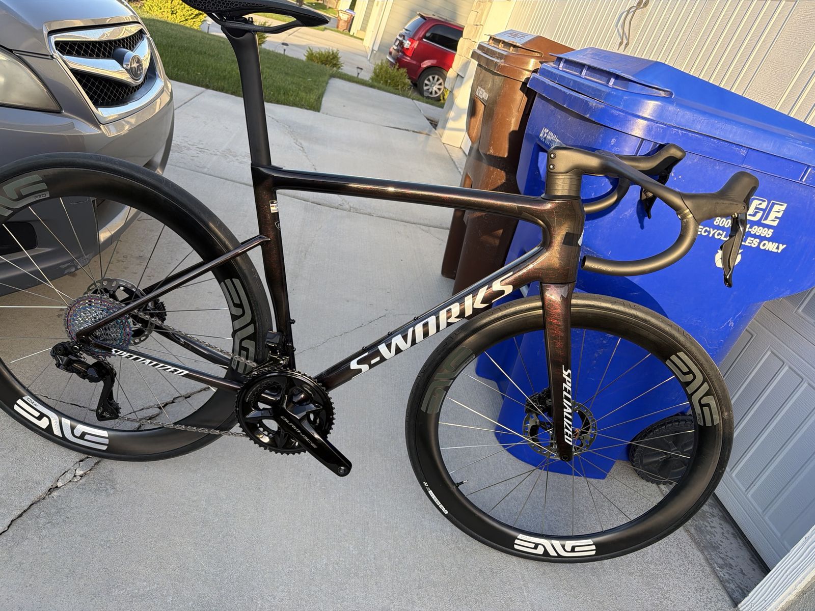 Like new only a short around the block test ride on it. $9600. OBO Full Durace 56cm with ENVE SES 4.5 pro Wheel-set. ENVE race tires S works romin saddle Left side 4iiii power meter