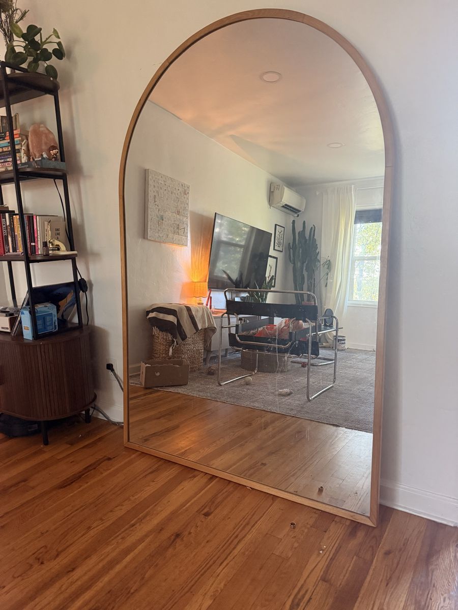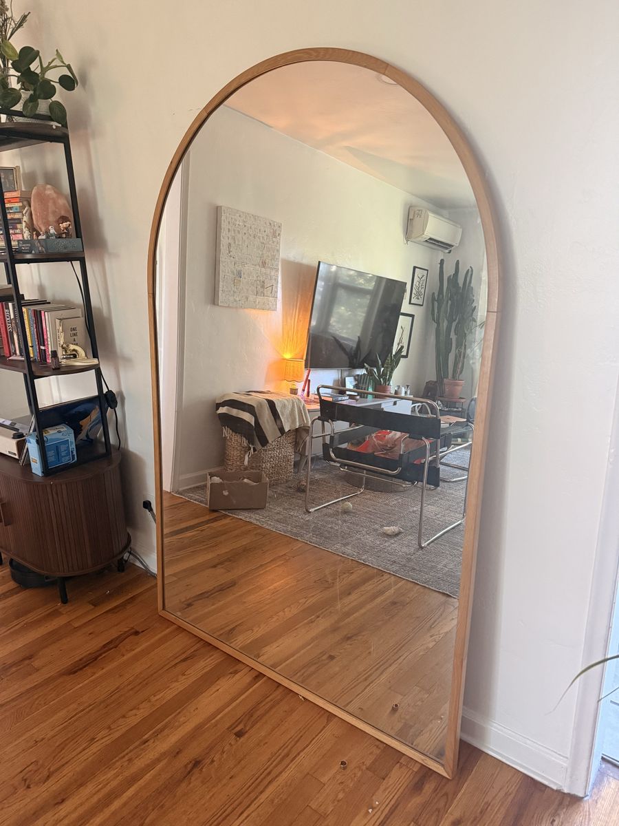 Extra Large arched floor mirror with wooden frame. I absolutely love it, but I’m moving and it’s too heavy for me to carry on my own.