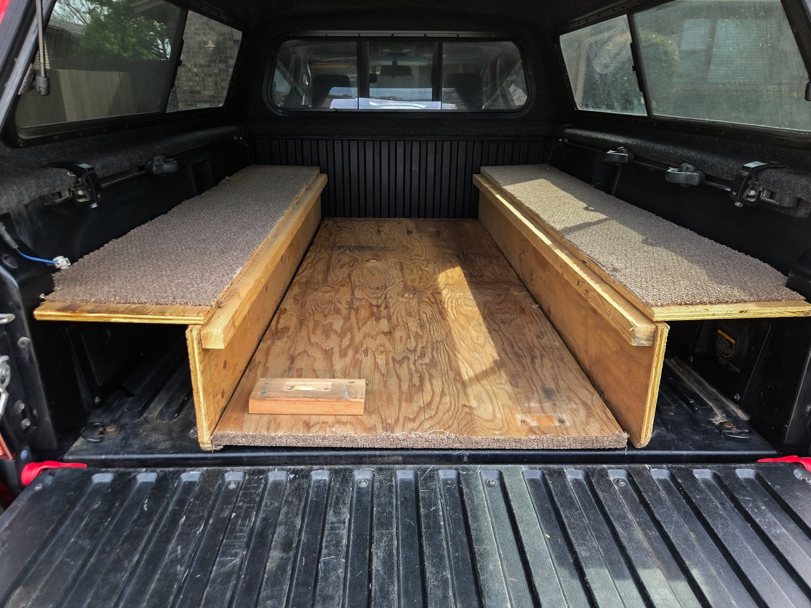 VenmoFor sale is a truck bed platform that I built for my 2006 Toyota Tacoma. It served as a platform to mount two mountain bikes in the dropped down configuration and a bed platform for camping inside the bed of the truck. It has worked well for those purposes but I am selling my truck and wanted to see if anyone wanted these before I make another use of the wood.