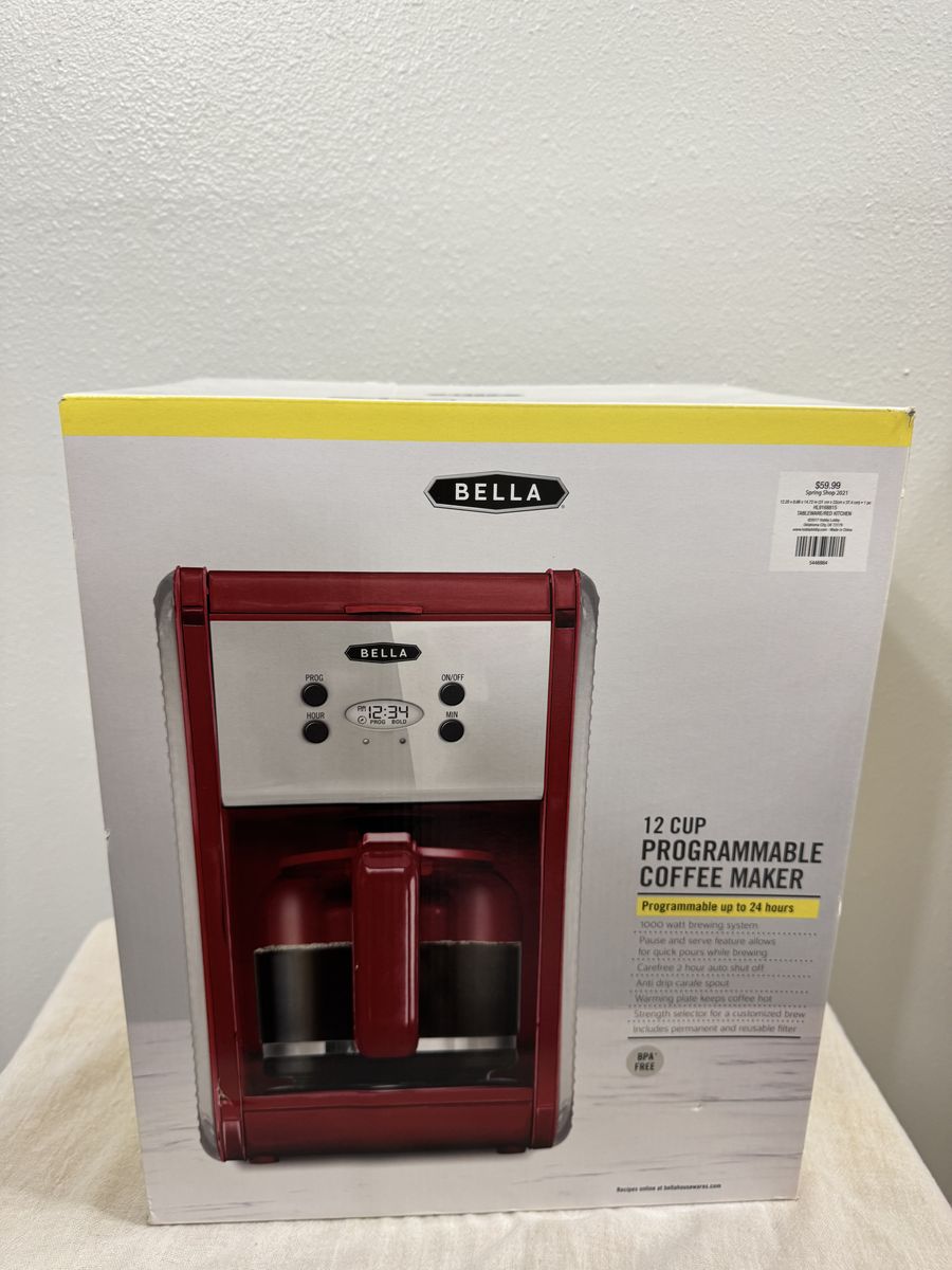 Brand new Bella 12-cup programmable coffee maker, never been used and still in the original box.