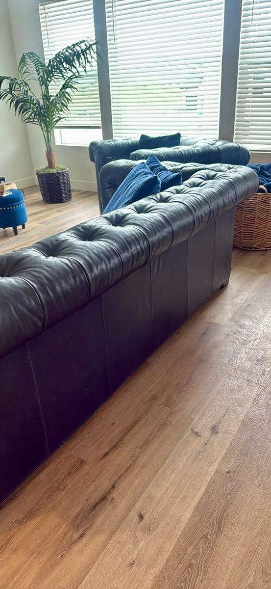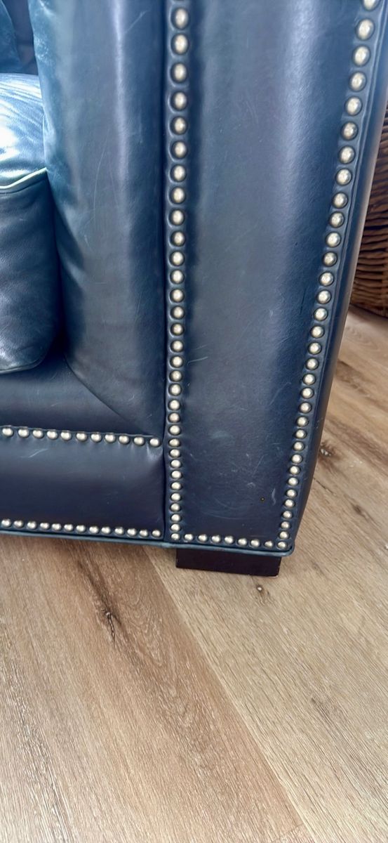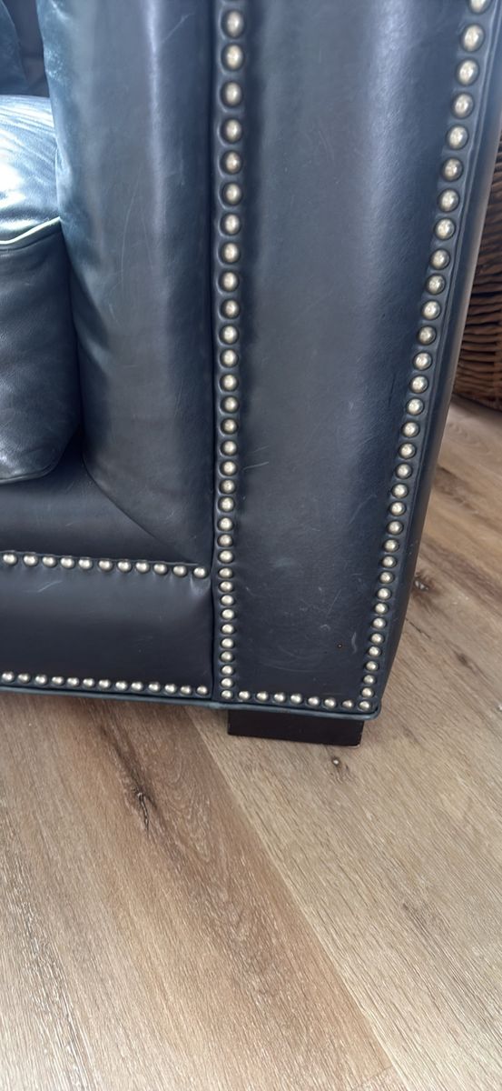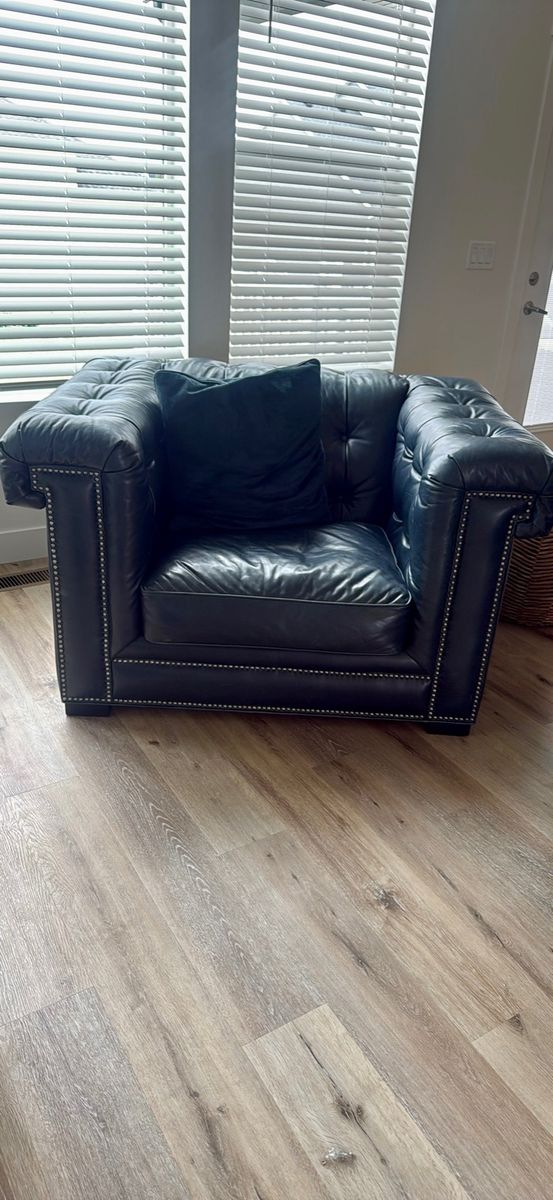 Leather tufted sofa and oversized chair from Pottery Barn. They are good quality and not that worn. New house with new colors so time to sale these items.