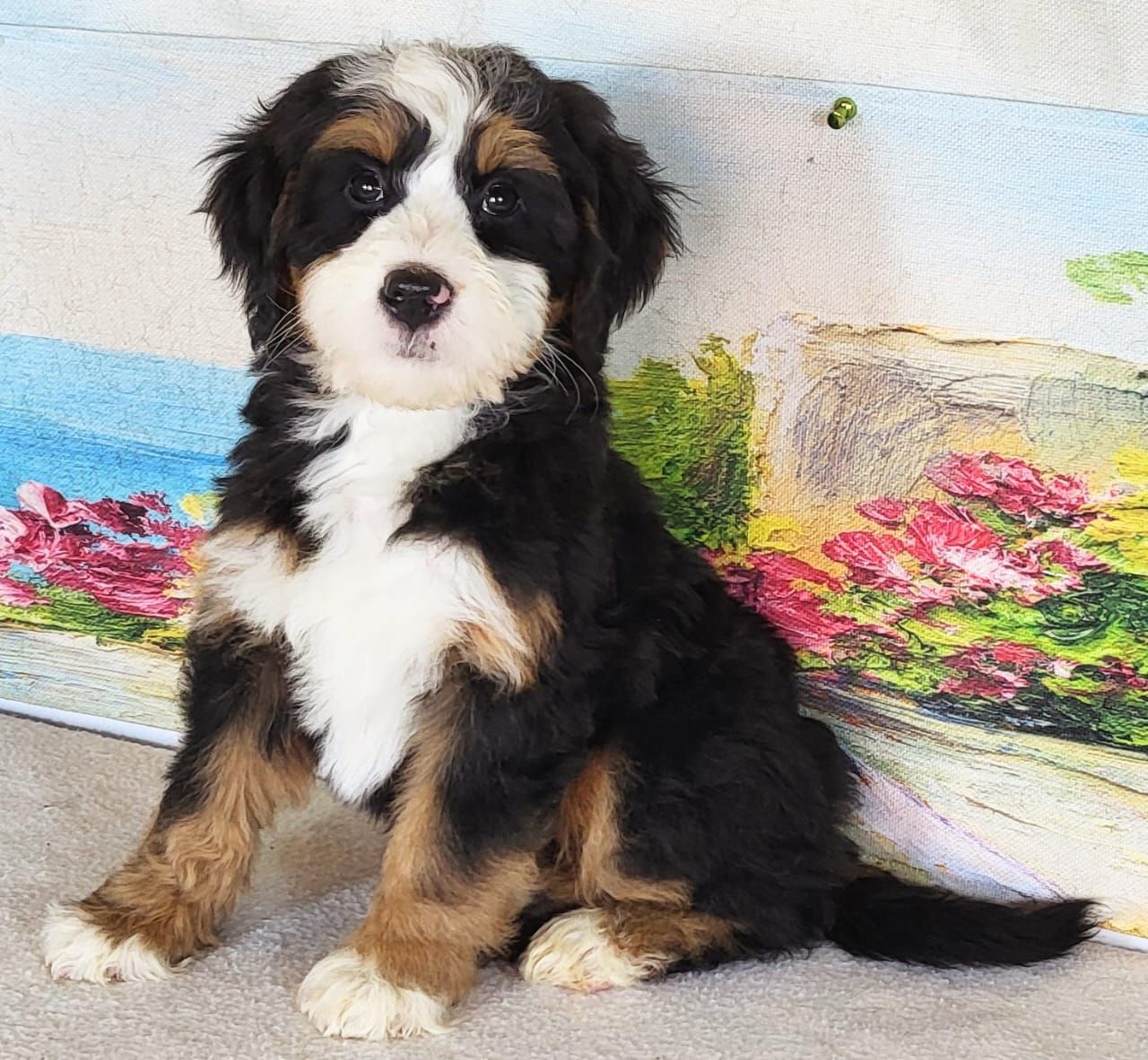Girl Ivy is being raised with plenty of love and attention, helping her grow into a confident, well-socialized pup who’s ready to transition smoothly into her forever home. She has the classic Bernedoodle traits—smart, affectionate, and eager to please.