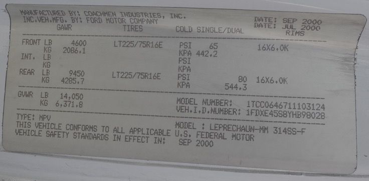Optional Weight: 760 (Jacks, Awning, etc.)