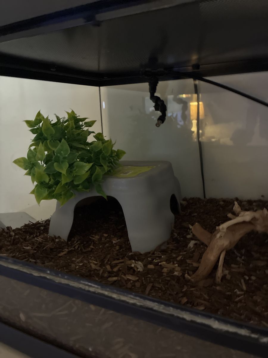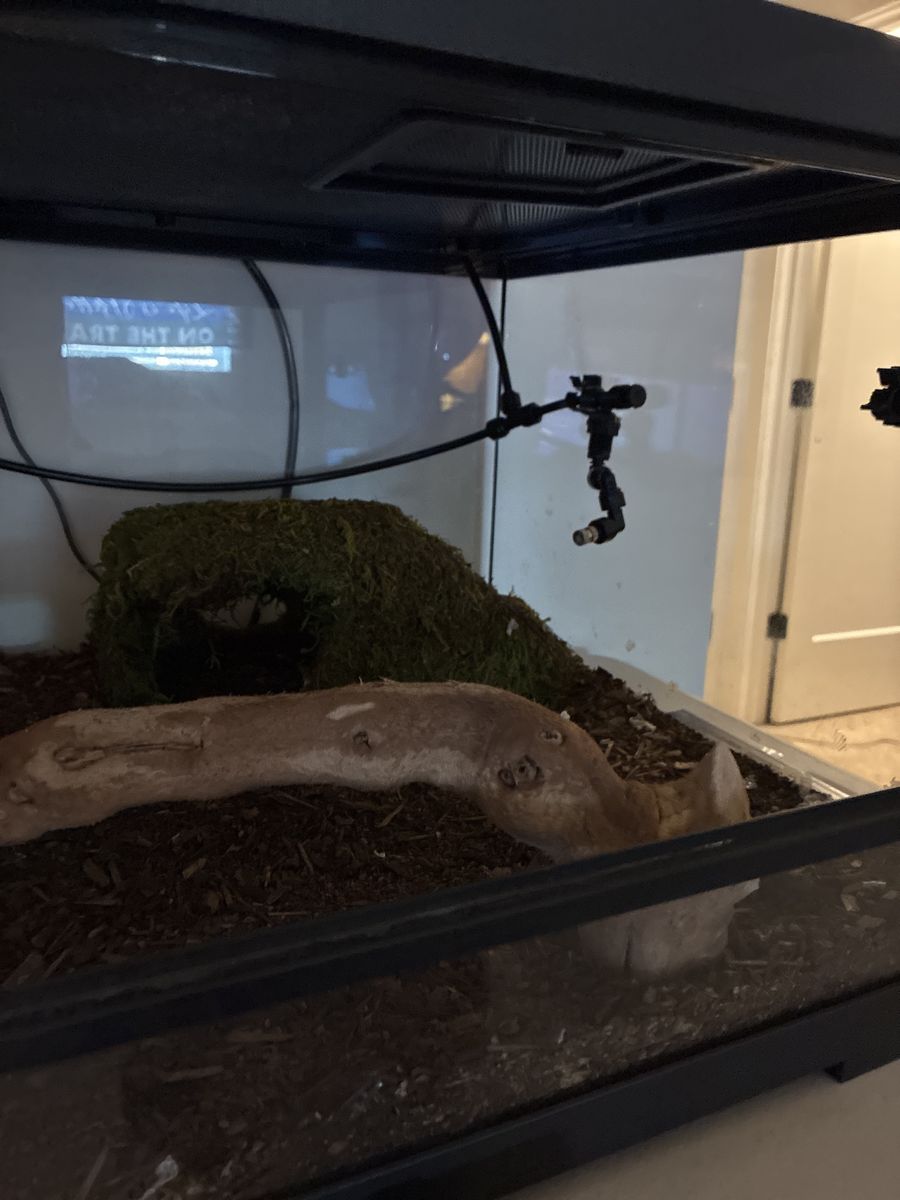Super cool set up upgraded the tank for my snake. It’s got a little water humidifier spring system and a no light heating source all a super good deal.