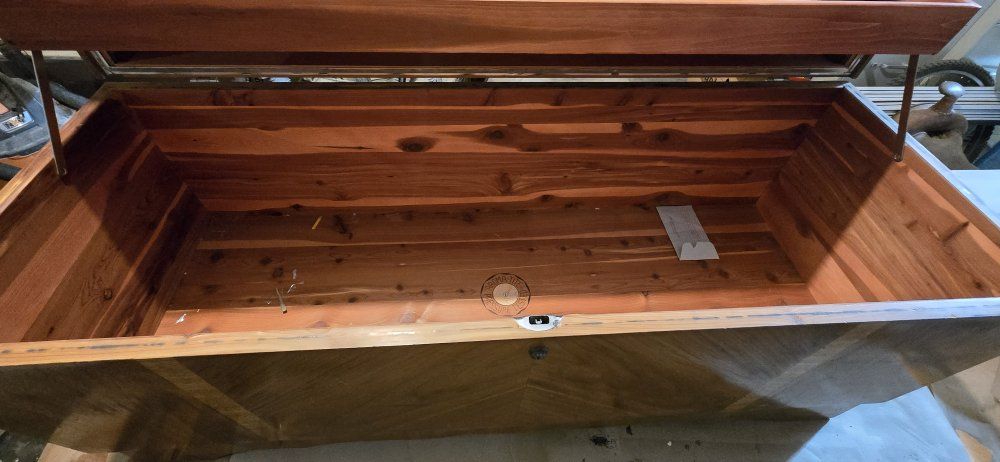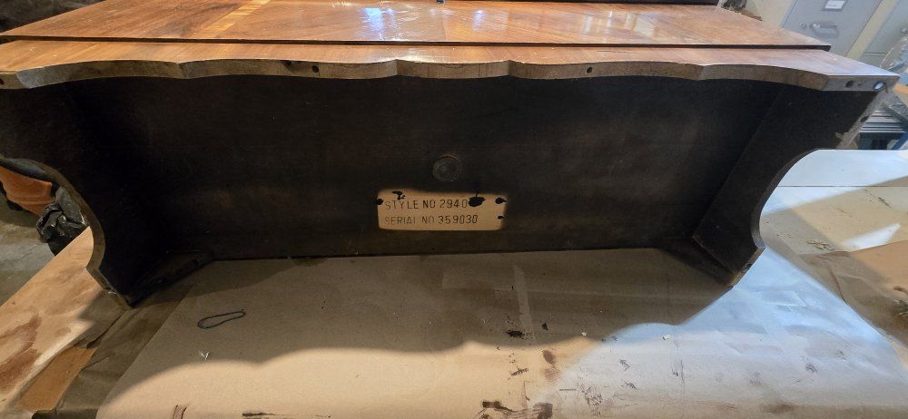 PayPalBeen in our family a long time, my mom is in her mid 80s and doesn't need it anymore. Made March 9, 1953. It's in really good shape for how old it is, and could be used as is, works great. There are some very small dings here and there on the outside, the inside is in really good shape and the felt lined sweetheart tray is in great condition, and it even has the original key. If someone wanted it to look new just touch it up a little here and there on the front top and sides, put a light gel stain on it and clear coat and it would look like new. generally these are from 250 to $500 if they're in good condition which this one is. I'll take the low end. Please let me know if you're interested. Thank you.