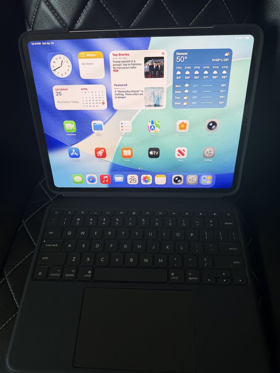 • 13” Ultra Retina display – insanely sharp & smooth • Apple M4 chip – lightning-fast performance for multitasking, editing, gaming & more • 512GB storage • Cellular + Unlocked – use with any carrier or WiFi • 100% battery health (only 7 cycles) • Sleek Silver finish • Includes Like-New Logitech Combo Touch detachable keyboard ($270 value) FREE ! Box included