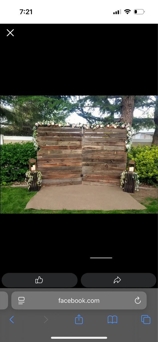 VenmoThese rustic backdrops provide a beautiful and memorable aspect to weddings, photoshoots, and other meaningful events. There are two of the foldable backdrops available for rent as seen in the pictures. The price listed is the price for one, if both are rented it is only $95. Upon coordination, the backdrops can either be picked up or delivered. Delivery does include a small additional fee. Dimensions: Smaller: 85 inches tall by 60 inches wide (one panel). Larger: 89.5 inches tall by 64.5 inches wide (one panel). Message me with any questions.