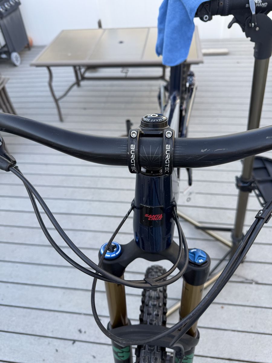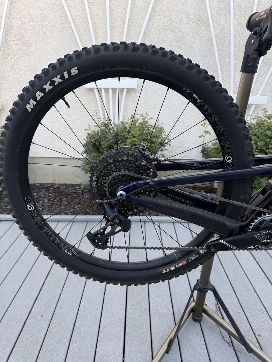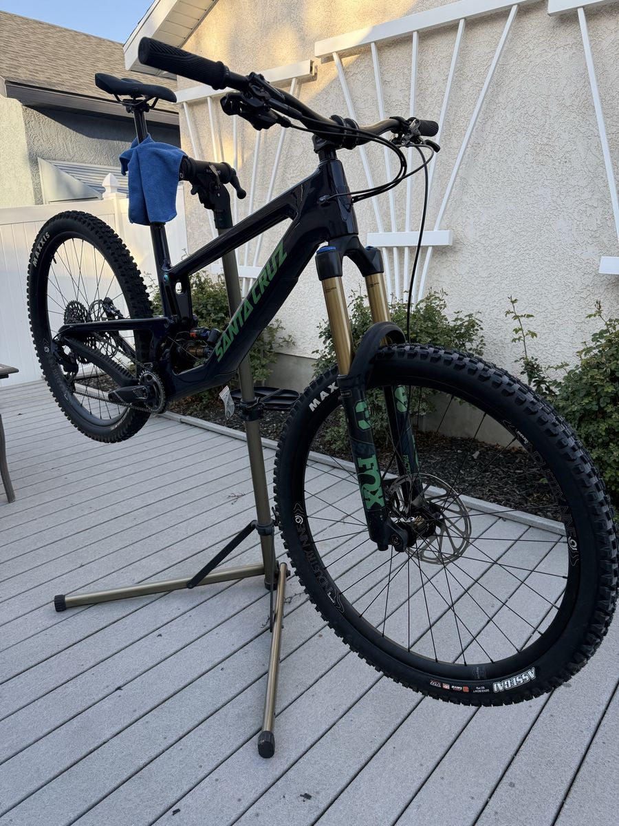 Specs: Shock: Fox X2 Factory 230x62.5mm, tuned by Fluid Focus Fork: Fox 38 Factory 170mm, tuned by Fluid Focus Brakes: Shimano XT M8120, 200mm with NEW Centerline rotors front and rear Drivetrain: NEW SRAM GX, 10-52t w/ 30t chainring, NEW Truvativ Descendant crankset Wheels: NEW Industry Nine Enduro S with Hydra hubs, Tires: Maxxis Assegai 2.5, front is new, rear is like new Handlebar: Santa Cruz carbon bar 800mm Stem: Burgtec Headset: Chris King Grips: PNW Loam XL Saddle: WTB Volt Seatpost: Raceface Turbine R 200mm