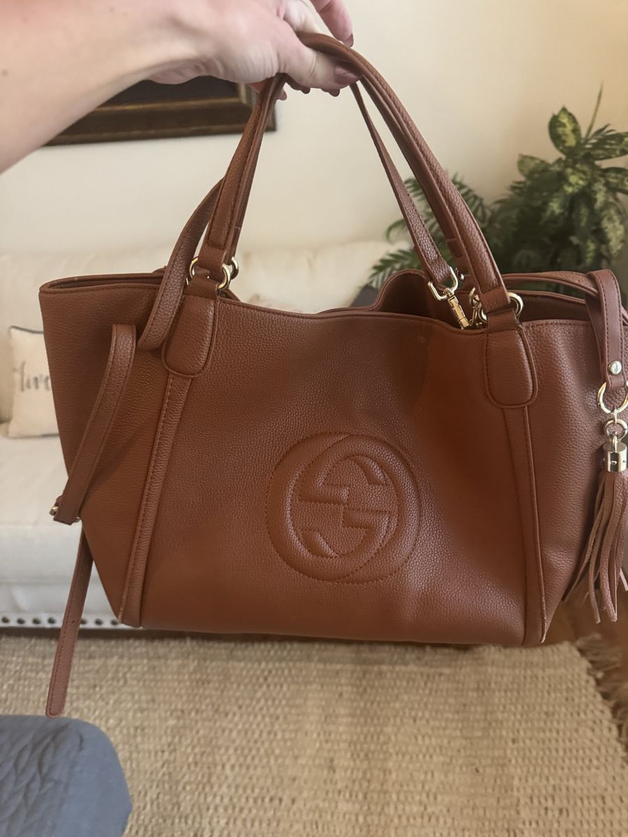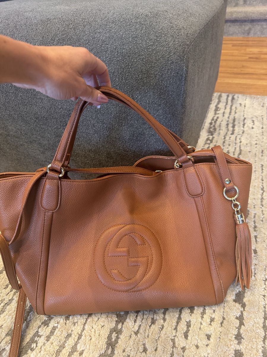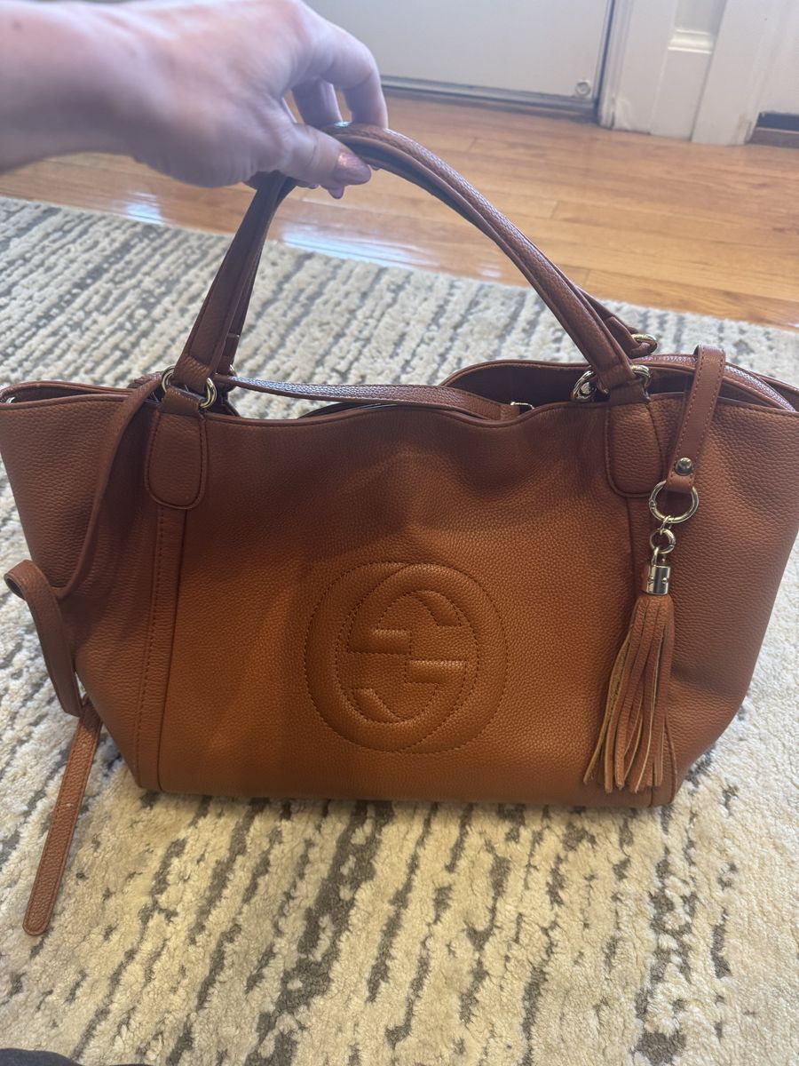 Beautiful and timeless Gucci Soho tote in a rich cognac brown pebbled leather. This bag is both stylish and practical—perfect for everyday use, work, or travel.