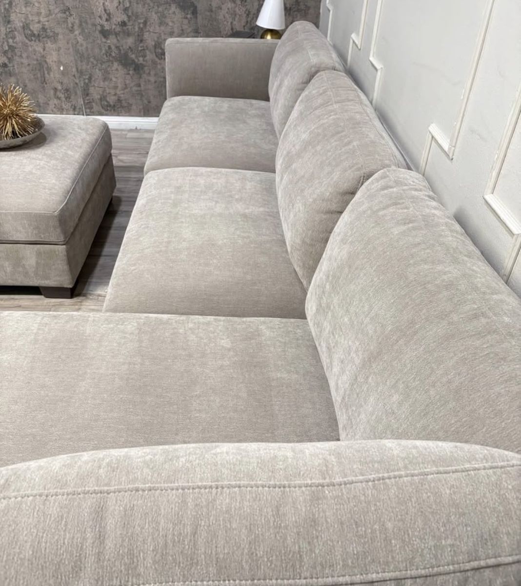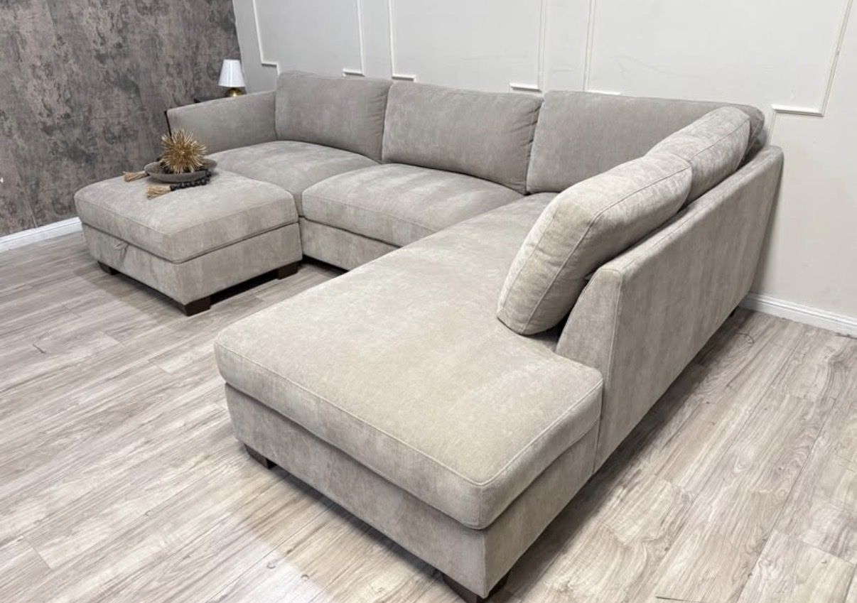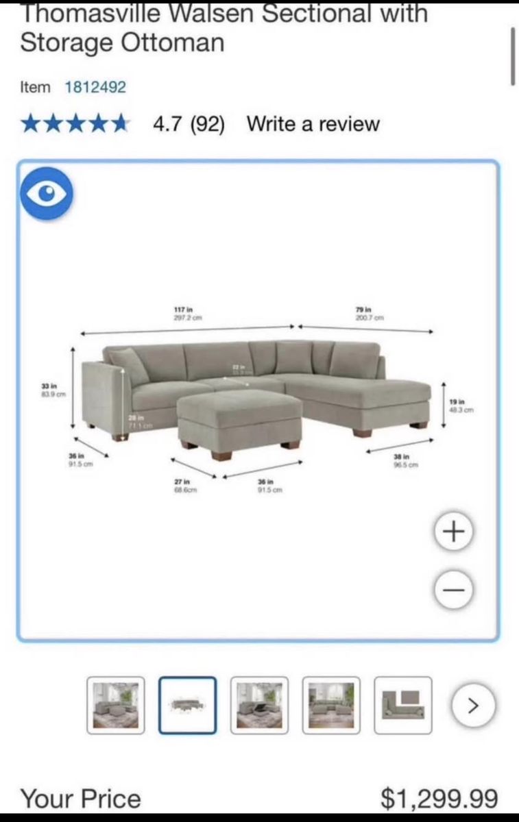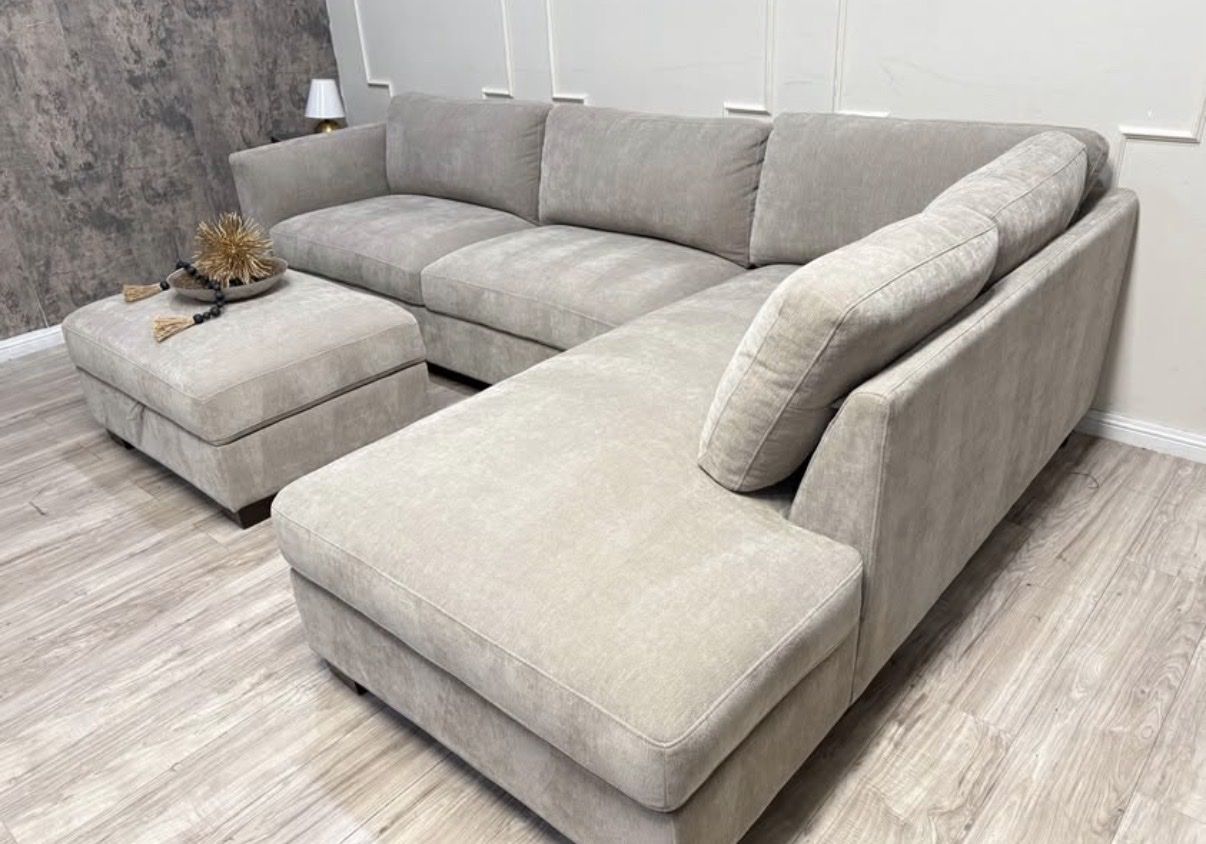 WHY YOU WILL LOVE THIS SECTIONAL... Transform your living room with the Thomasville Walsen Sectional Chaise with Storage Ottoman. Luxurious, soft polyester fabric and firm seat cushions offer the perfect blend of comfort and support. The modern track arm and solid wood tapered legs add a touch of elegance, while the lounging chaise and storage ottoman provide unmatched versatility. With two stylish accent pillows and practical attached cushions, this sectional is designed for both beauty and functionality. Enjoy ultimate relaxation and chic style with Thomasville.
