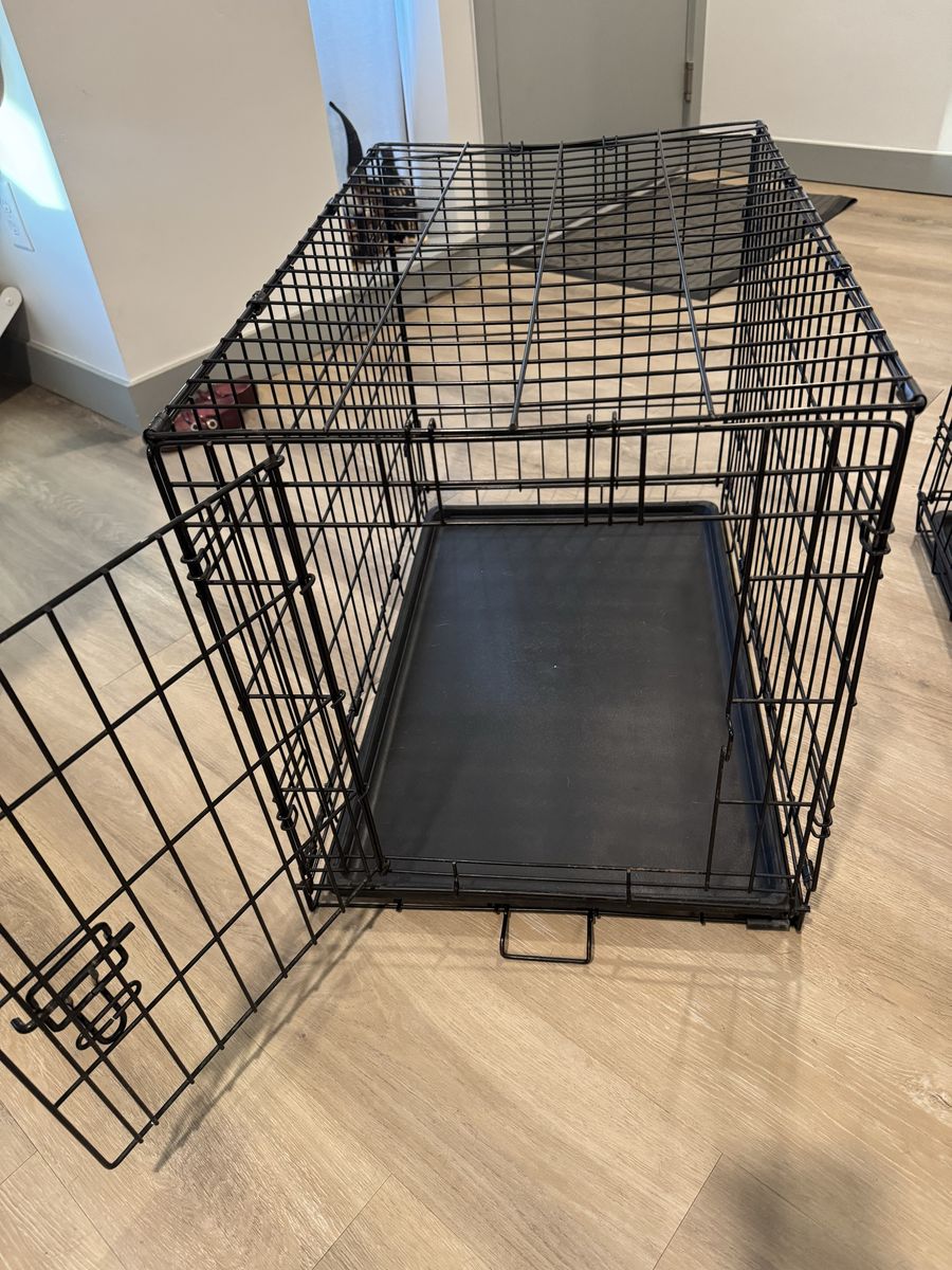 I have two small to medium (30-inch) dog crates for sale. Each measures approximately 30” L x 19” W x 21” H. Both are in good working condition with normal wear from use.