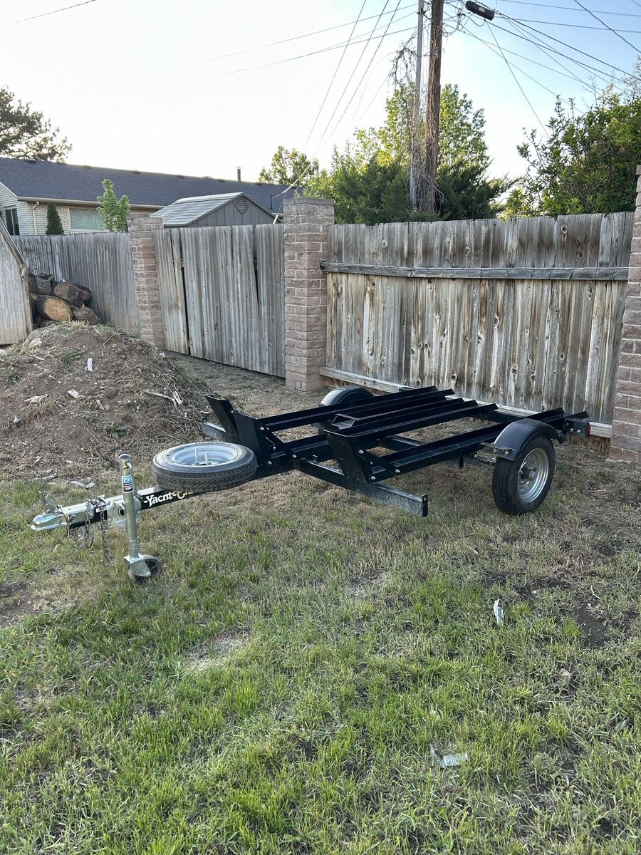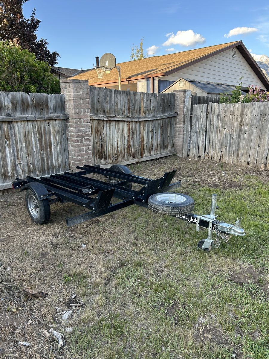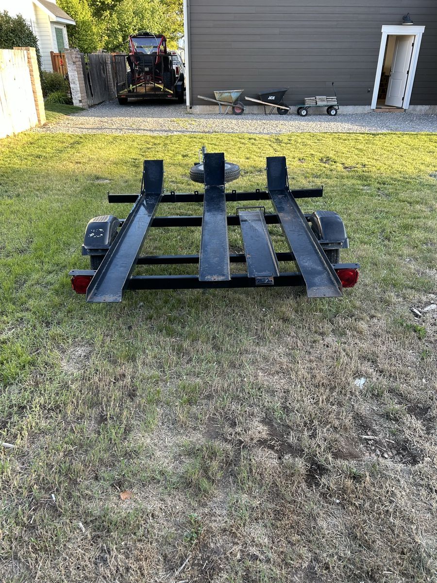 3 position dirtbike trailer. Don’t use it much anymore. It’s basically brand new and needs nothing all tires are basically brand new and comes with a brand new spare tire and built in ramp.