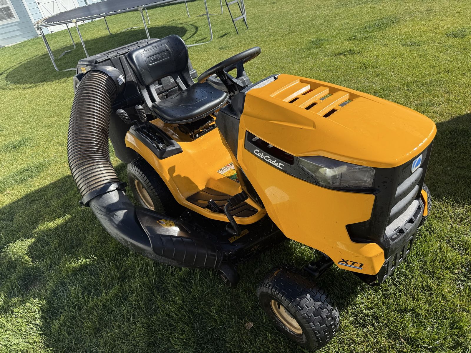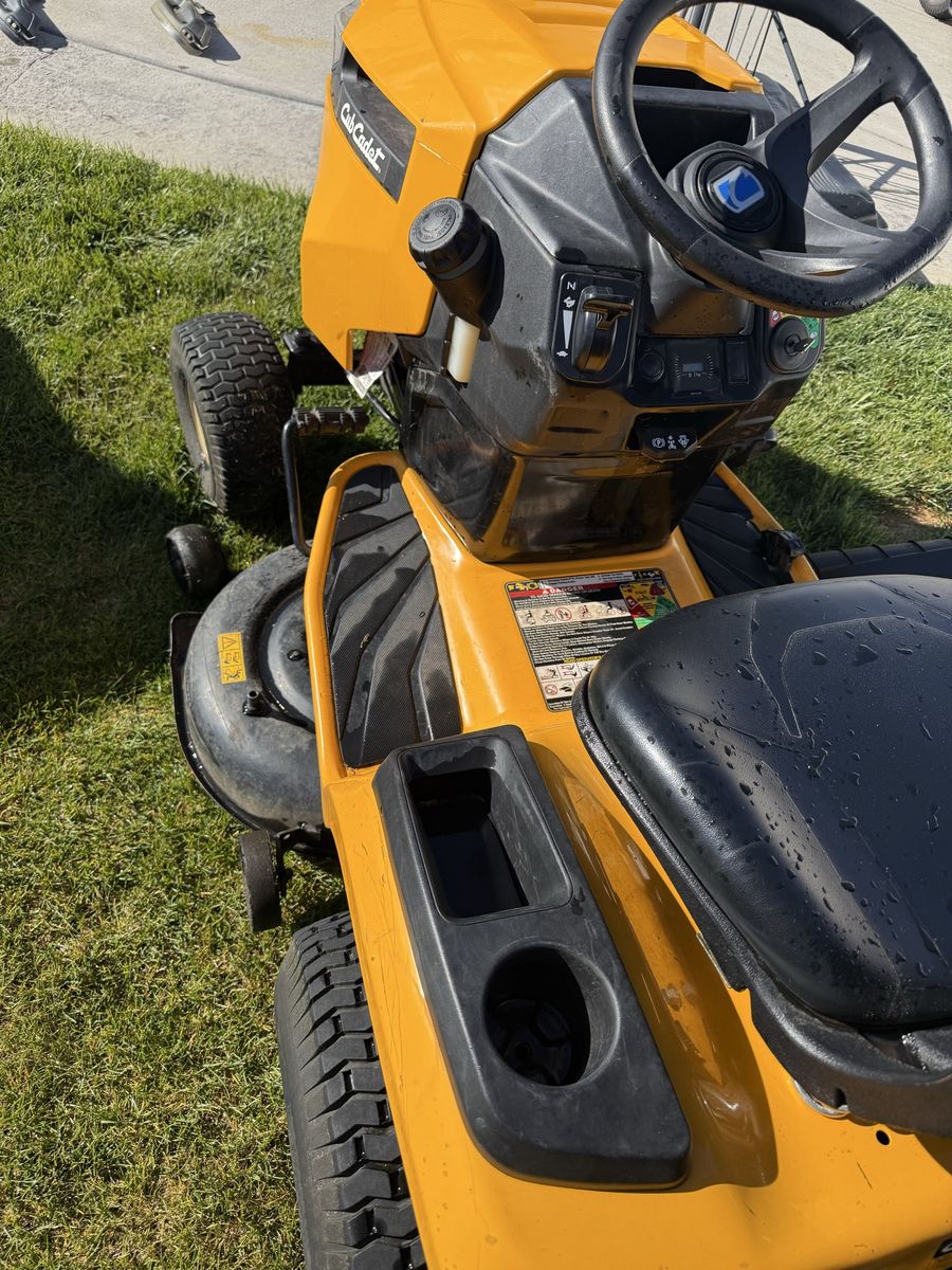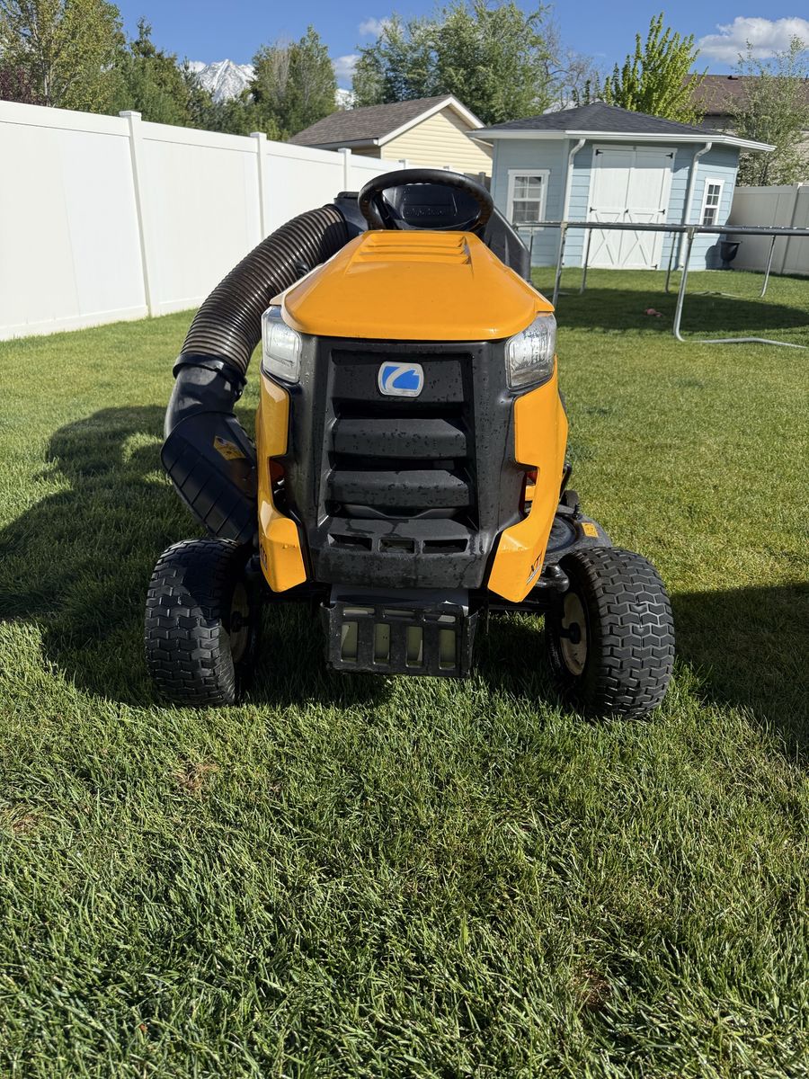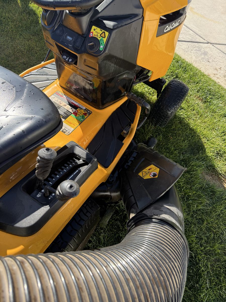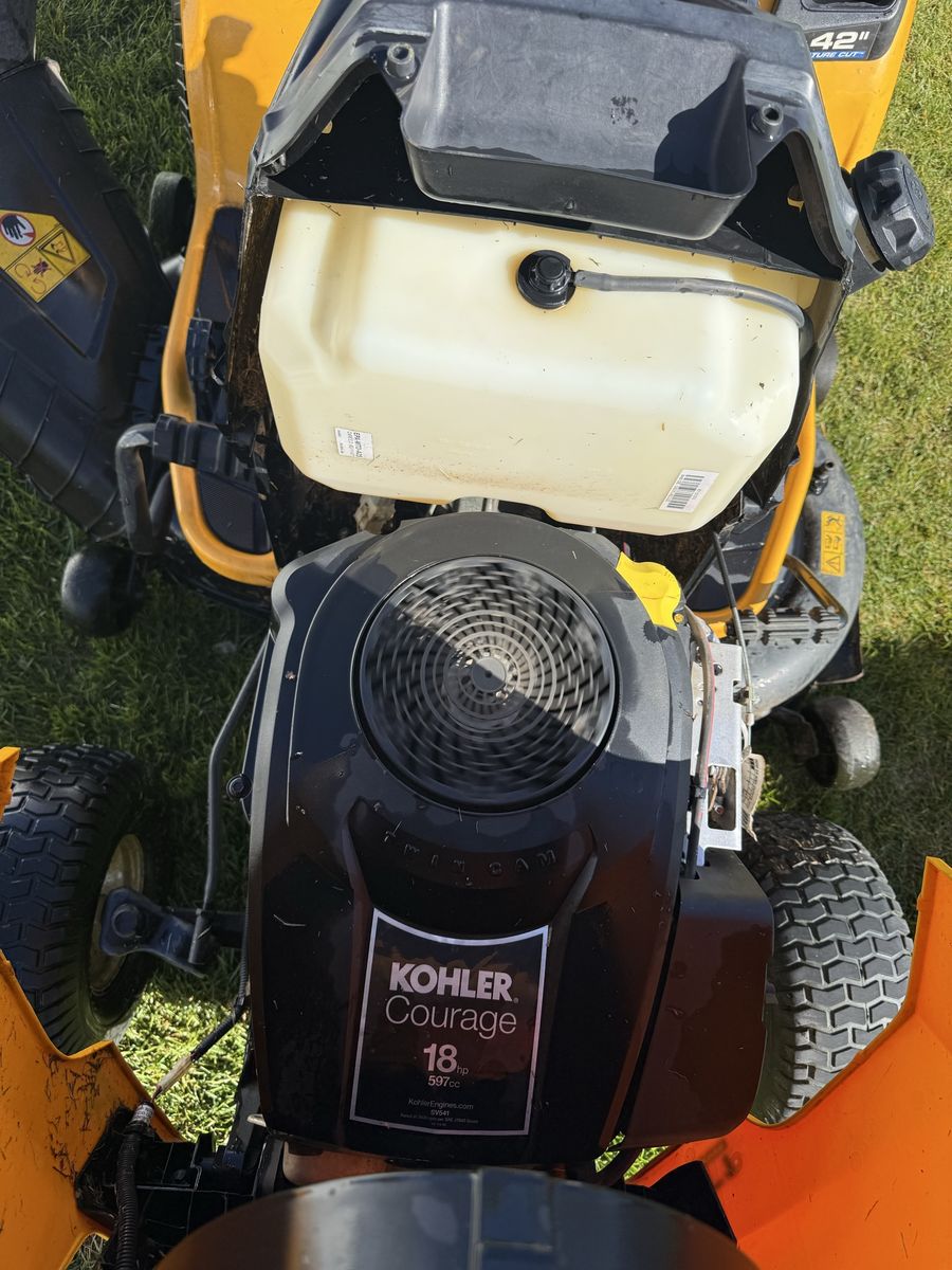 Runs, drives and cuts great. New battery and blades sharpened and it’s ready to mow. It has a 42 inch cutting deck and a 18hp Kohler engine. LED lights and also comes with a double bagger and a mulching cap. Great for leaving your yard nice and clean or to pickup leaves in the fall.