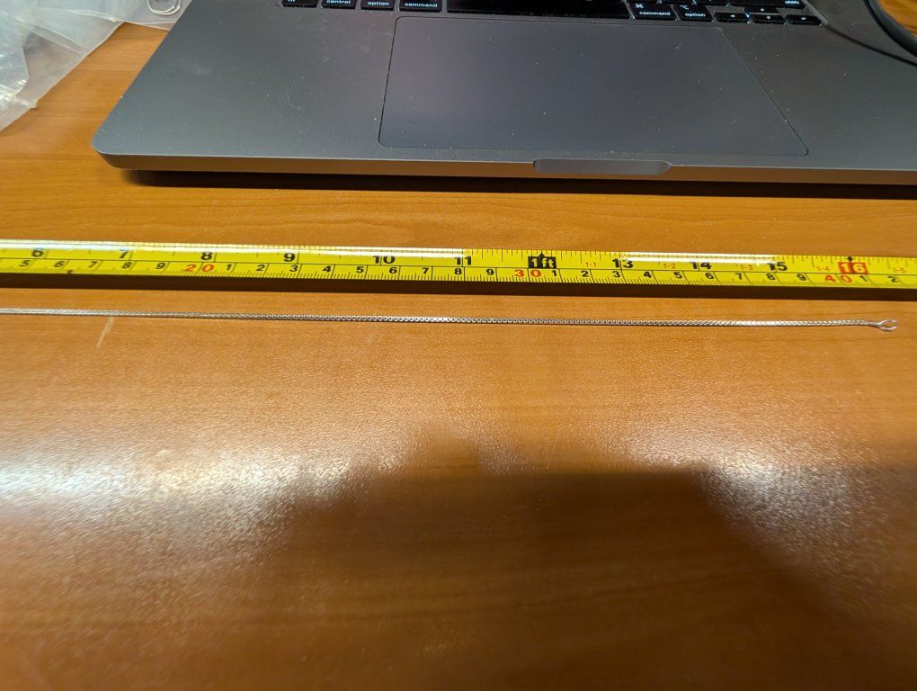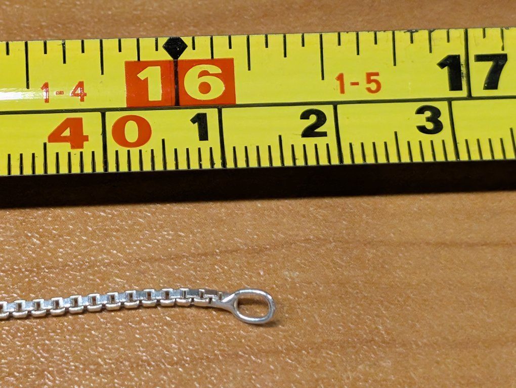 PayPalThe product is a 16-inch necklace made of fine sterling silver with a purity of .925. This elegant necklace features a sleek design and is perfect for adding a touch of sophistication to any outfit. The high-quality metal ensures durability and long-lasting shine, making it a timeless piece of jewelry that can be worn for years to come. 40 dollars or best offer. Will ship world wide.