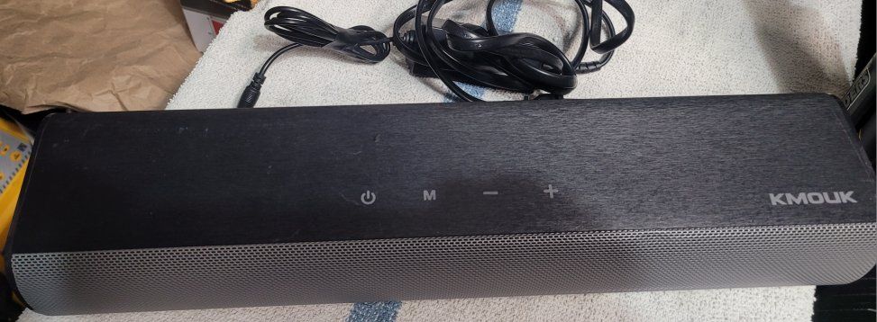 kmouk bt soundbar 50watt excellent sounding soundbar. links through bt and has other inputs. great soundbar. asking 20 cash only.