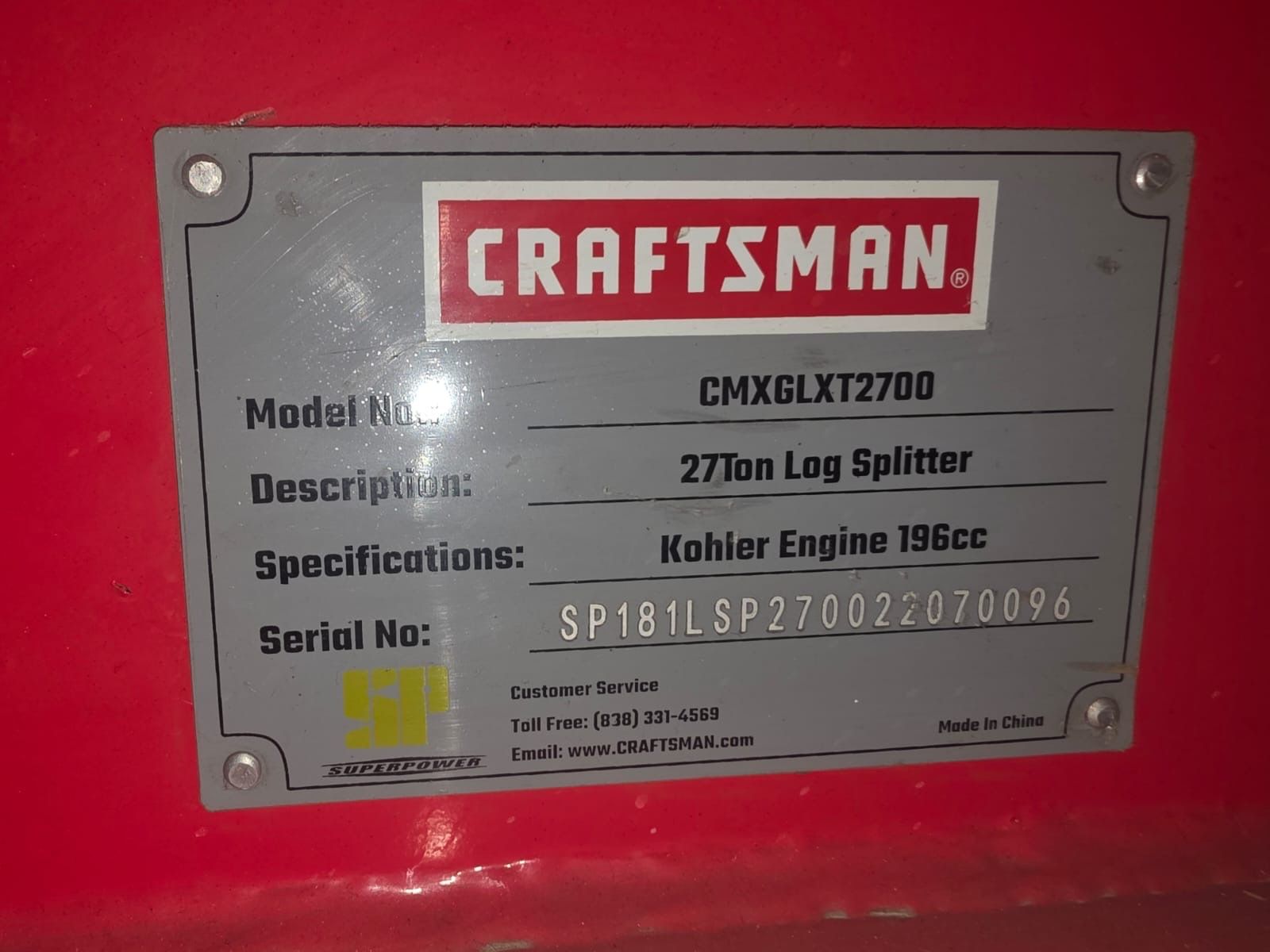 Craftsman log splitter for sale. Has been kept up with oil changes etc. selling for $1,100.00