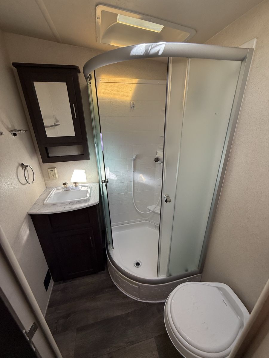 Utah Outdoors Unlimited is offering this beautiful Toyhauler for sale. It will fit a 4 seater side by side. No leaks or water damage. All the appliances and water system has been tested and working. The tires, brakes and axles are in good condition. The power awning works. The AC and Heat also both work great. It has a power queen bunk bed and a fold down couch bed and front bedroom with a queen walk around bed. It has power stabilizers on all 4 corners and a power tongue jack. The roof and floor are also in good condition. Clean title in hand. Any questions feel free to ask.