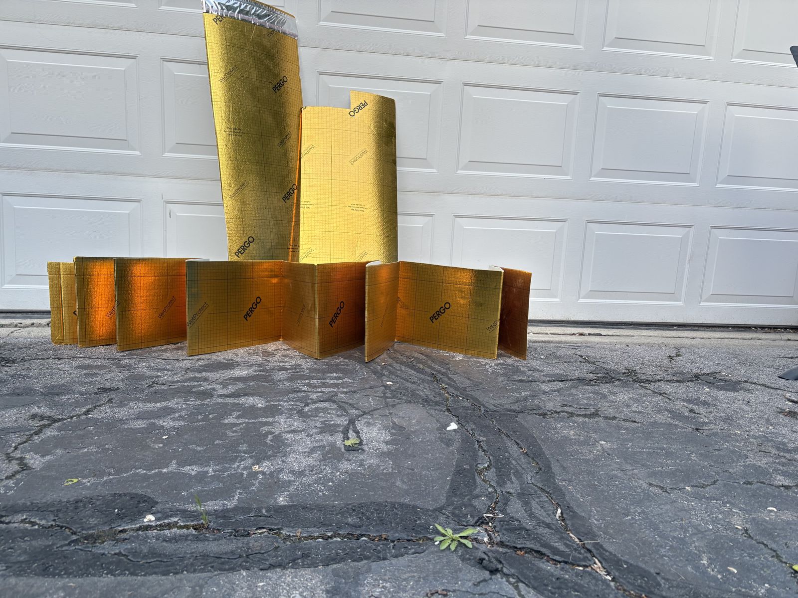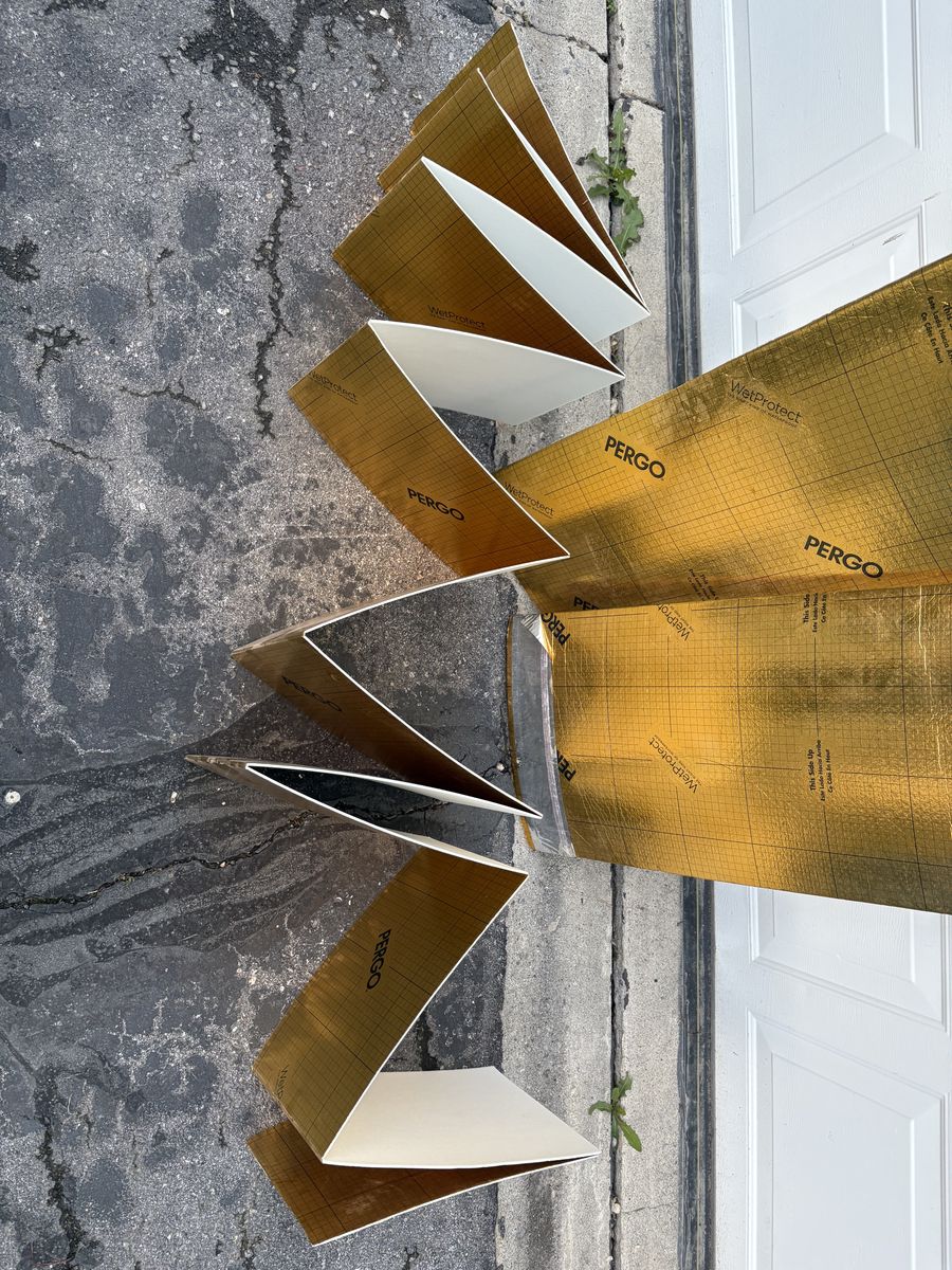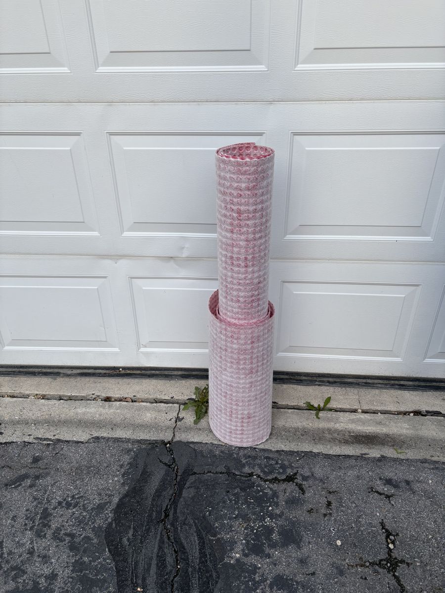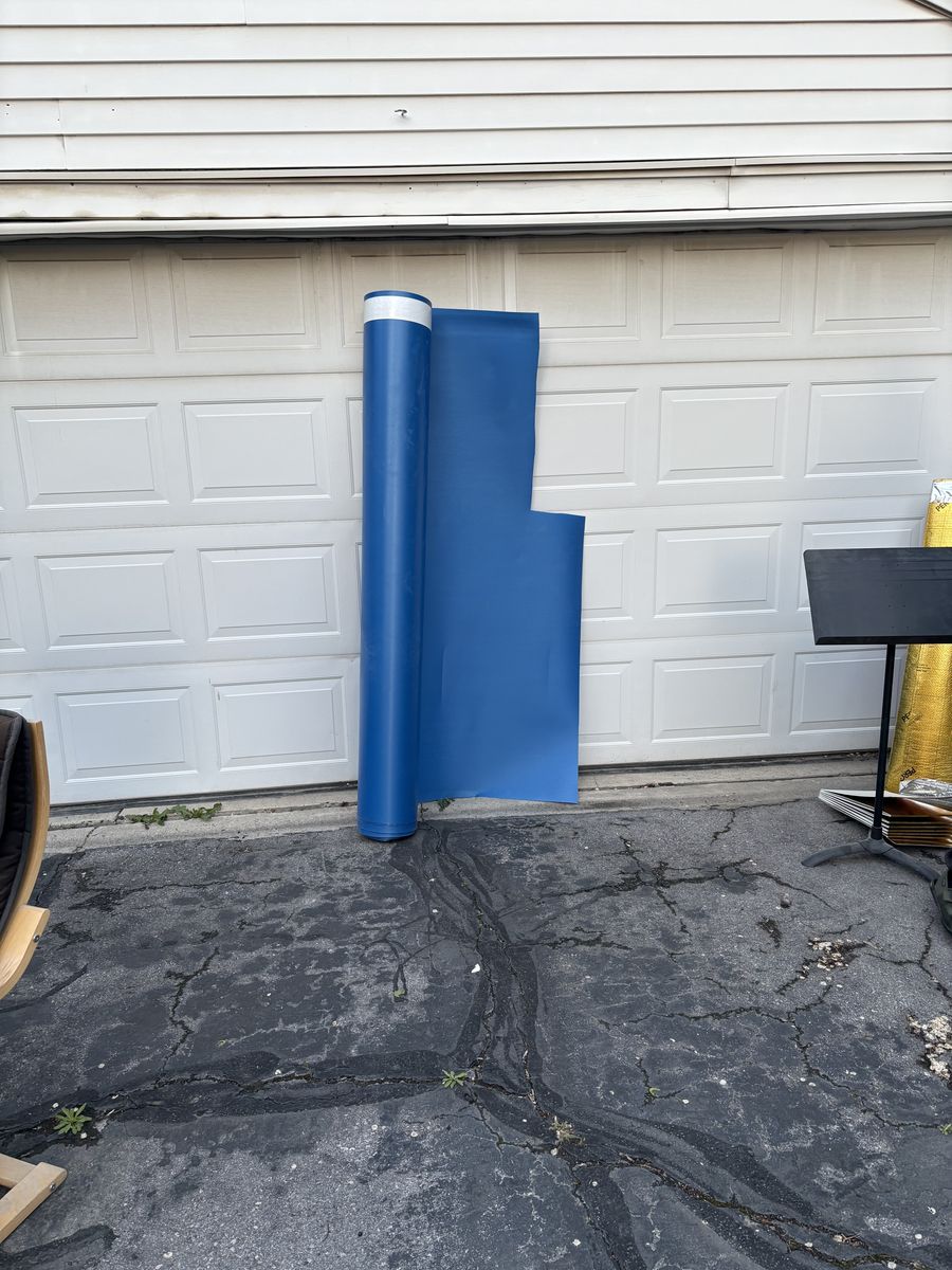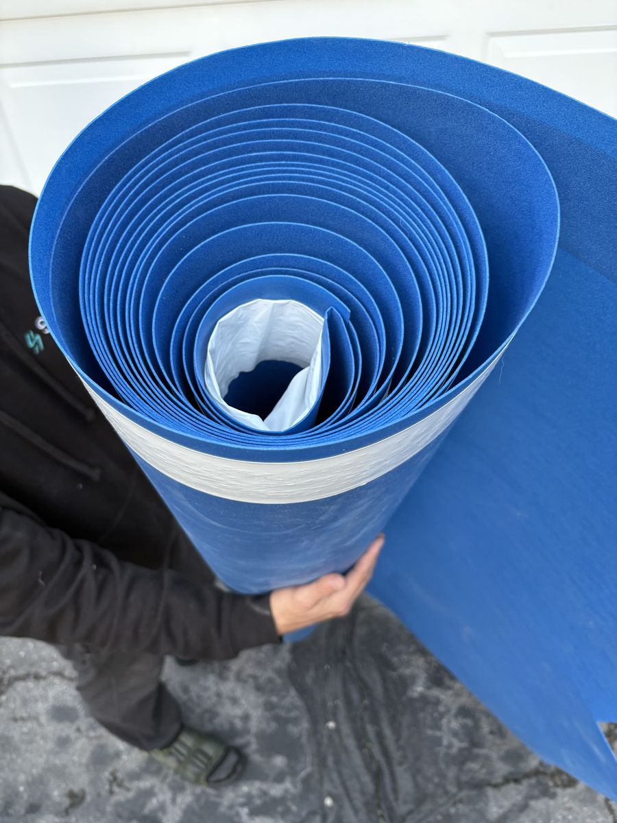 We have a large amount of the blue flooring, which goes under engin hardwood or laminate "wood" floors. Enough to complete a room or put a substantial dent in your project. https://www.flooranddecor.com/underlayment-installation-materials/sentinel-protect-plus-underlayment-SPP101.html $0.50 sqr foot or $70 for both rolls