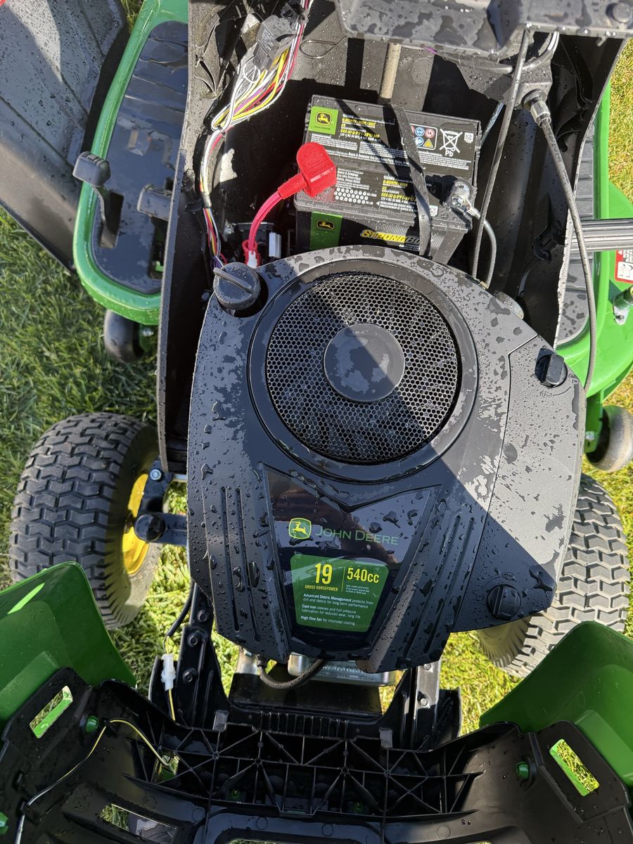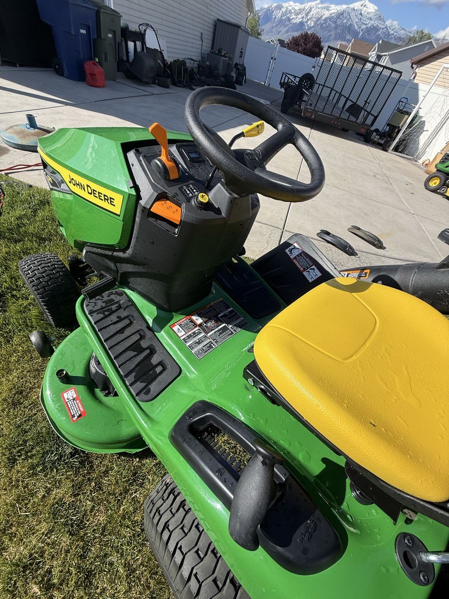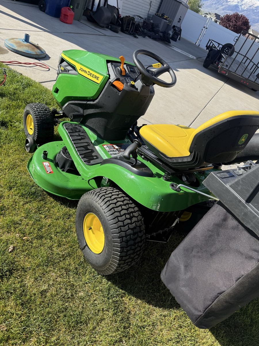 This is an almost brand new John Deere S110. Only 11 hrs on it. Still hasn’t been broken in. This machine has the upgraded 19 hp engine and 42inch cutting deck. Just installed the bagger system and it’s ready to go to a new home. This unit at Lowe’s is over $3500 plus tax. Take advantage at this great deal.