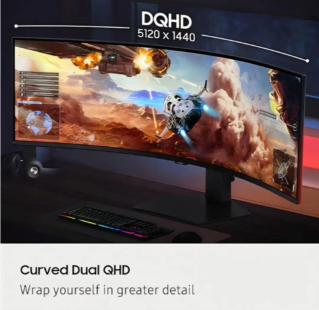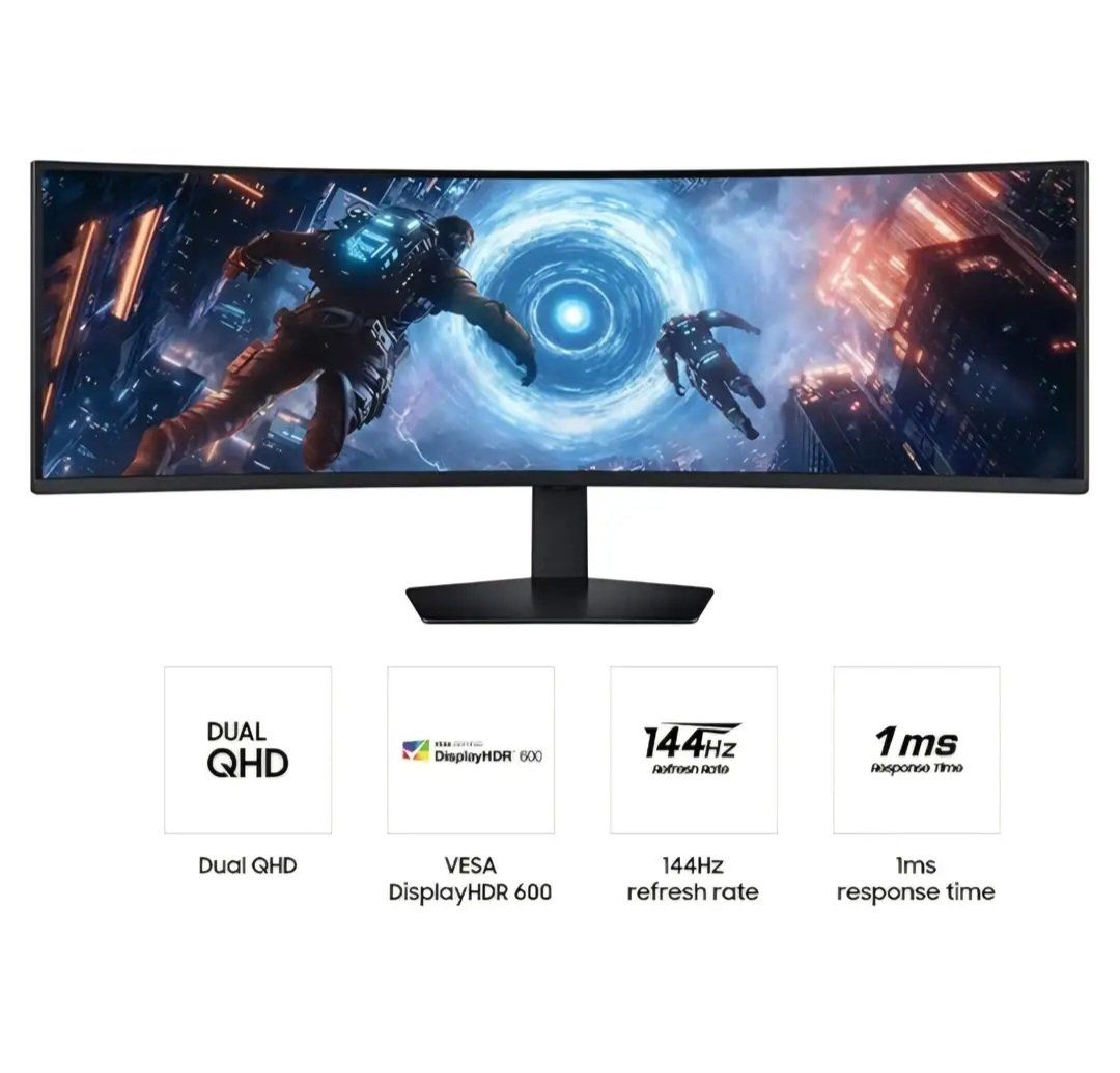 SAMSUNG 49-inch Odyssey G9 (G91F) DQHD, 144Hz, Curved Gaming Monitor, Ultra-Wide 32:9 Screen, DisplayHDR 600, AMD FreeSync™ Premium Pro, Ergonomic Stand, LS49FG910ENXZA, 2025