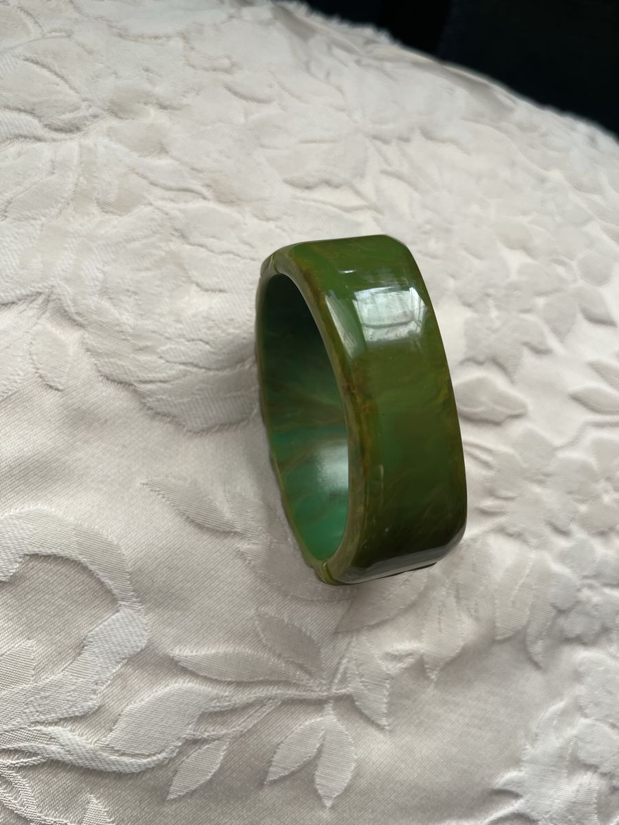 VenmoThis bracelet is stunning! The carving brings out other colors in the bakelite like golds and browns. Own a piece of history no one else will have. Bracelet measures 1 1/4 inches across. It is quite a nice quality statement piece. Selling for a parent. Price is firm.