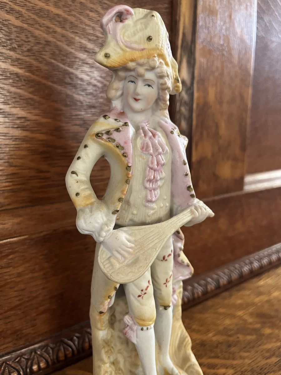 VenmoStunning romantic couple in excellent condition. The colors are vibrant and the detail on them is truely remarkable. They are marked L&M Inc. Which is Lipper and Mann. I believe these are from the 1950's. These are 8 1/2 inches tall. Sold only a set. Simply gorgeous! Selling to help a parent. Price is firm.