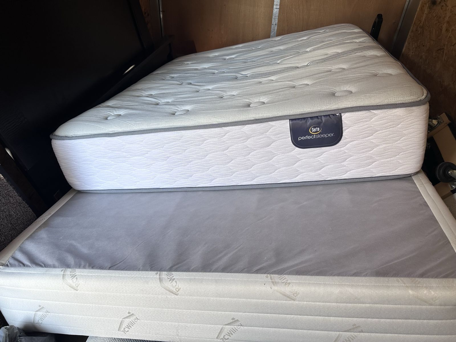 VenmoDouble bed headboard & footboard with rails, night stand, box spring and serta mattress