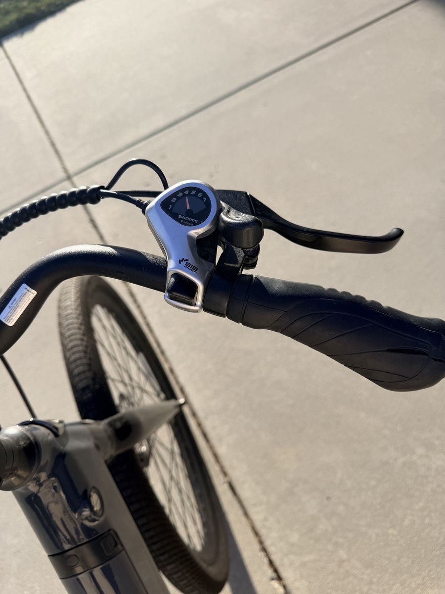 Pedal assist + full throttle options Battery holds a full charge Smooth, comfortable ride Great condition, lightly used Always stored in the garage