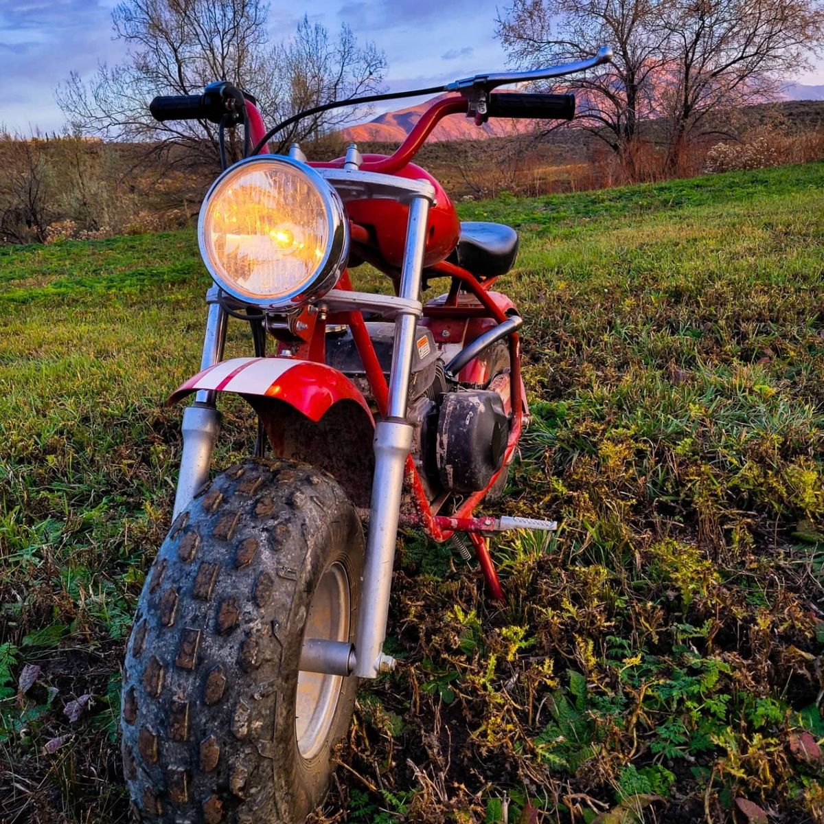I've got here a mini bike I bought brand new back in 2020. this bike has been equipped with a torque converter conversion kit. allowing it to rip up the mountains without any problem. it's perfect for riding up the mountains or trails and perfect for anyone who is looking for something fun for the summertime. ive recently replaced the carburetor and spark plug in it so it starts up right away and goes without issues