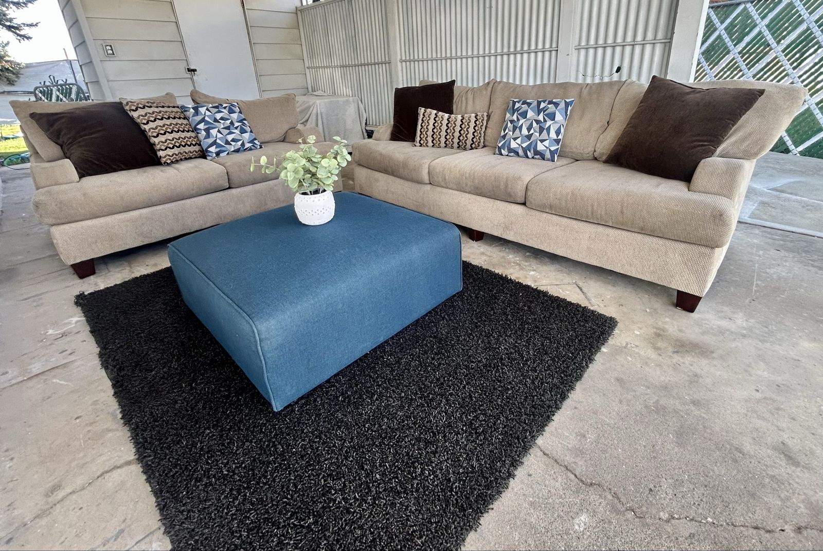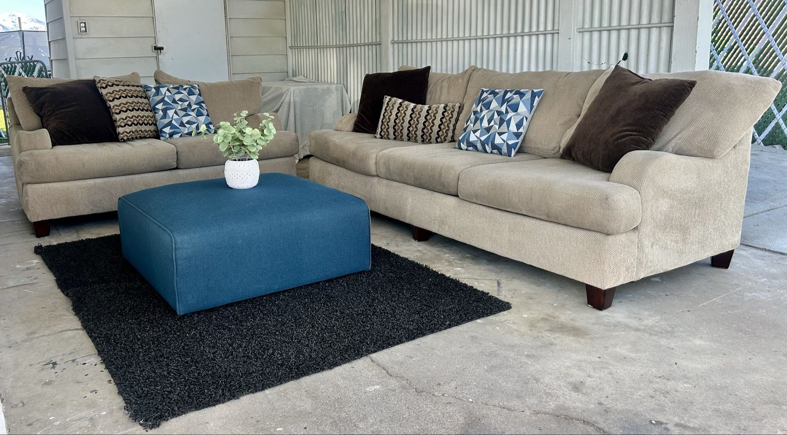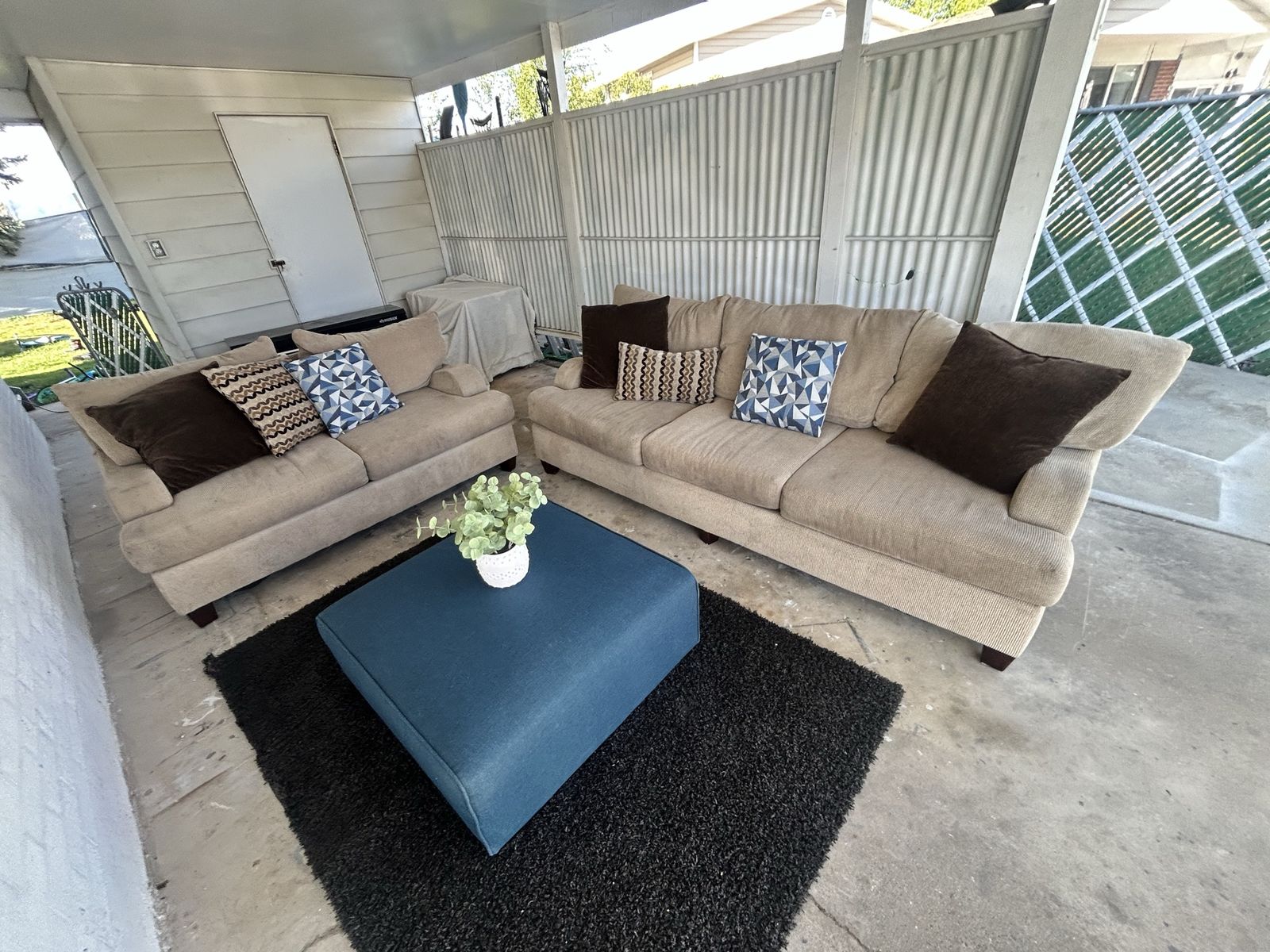 VenmoWell loved couch and love seat set with throw pillows and ottoman. Fair condition. $250 OBO FCFS. Pick up in Washington Terrace.