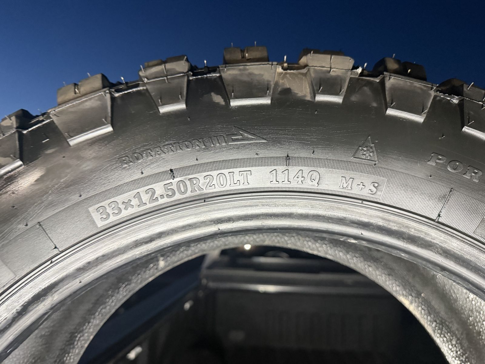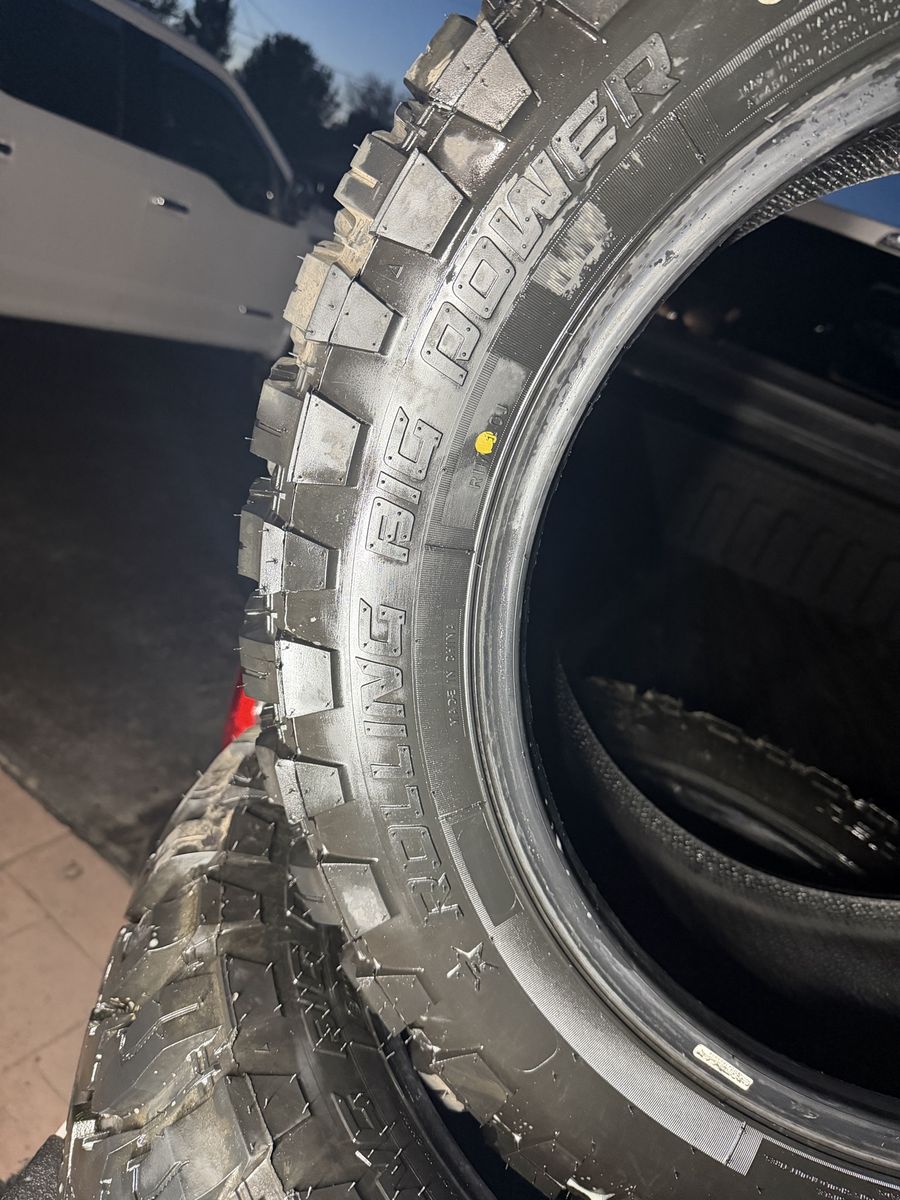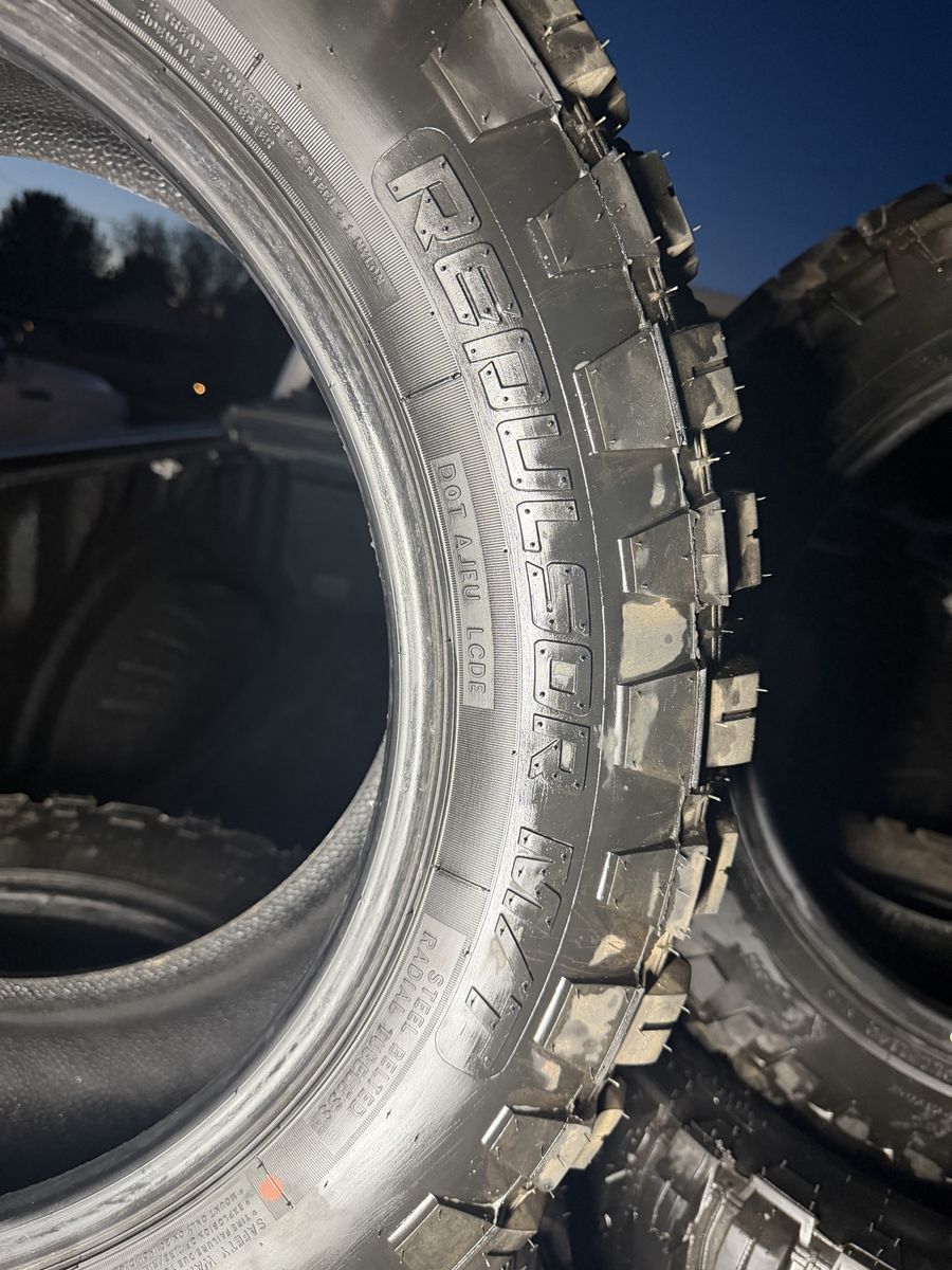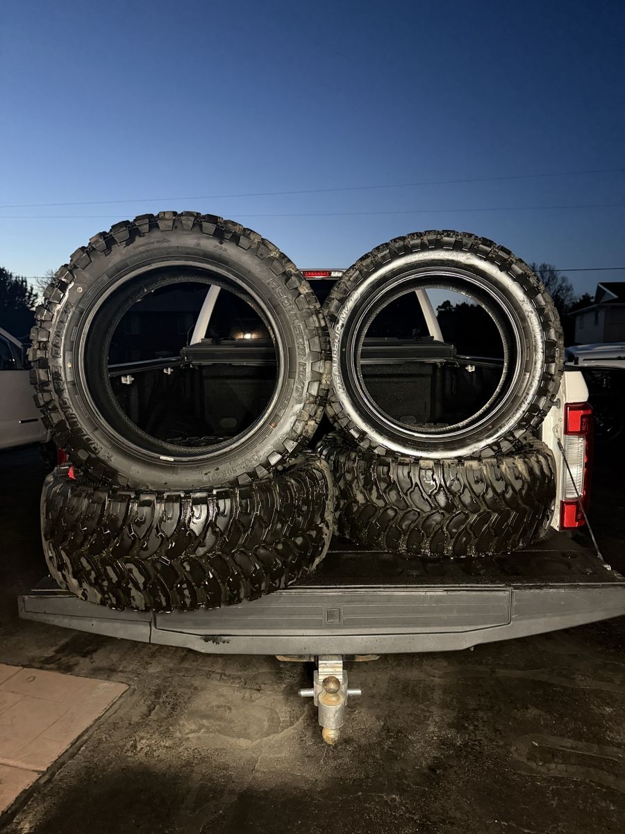 For mud terrains, they’re surprisingly quiet on the road and ride really nice. No damage, no patches, no weird wear – just a solid set of tires ready to go.
