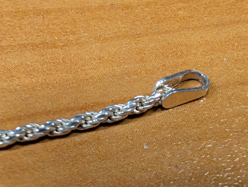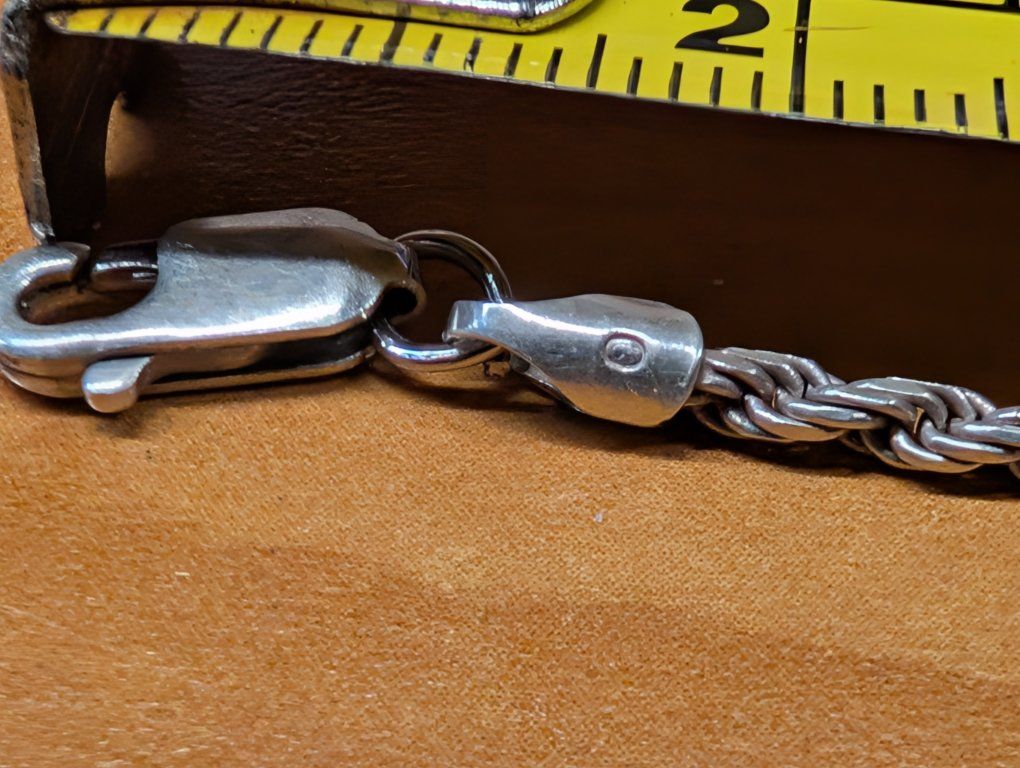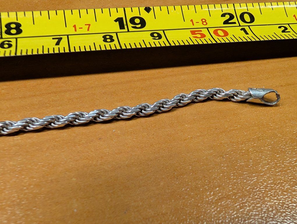 PayPalThis 20 inch sterling silver rope necklace from Italy features a lobster closure and a classic chain style. Made with 925 sterling silver, this necklace is sleek and sophisticated, perfect for adding a touch of elegance to any outfit. The simple design and high quality materials make it a versatile and timeless piece that can be worn for any occasion. 50 dollars or best offer. Will ship world wide.