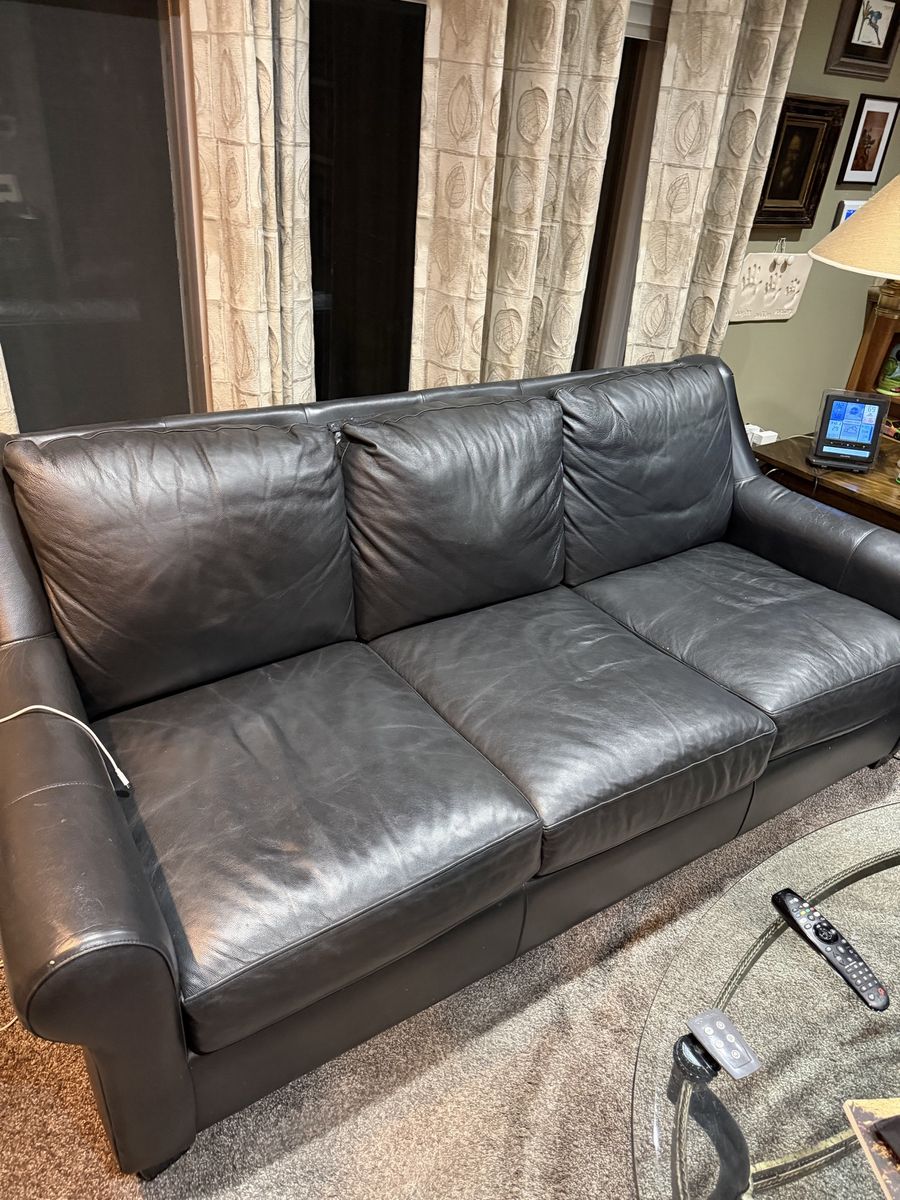 Venmo3 person couch for sale. Green leather, in great condition. There are two cushions pulling away from the back but other that like new. Asking $100 or best offer. Call or text JD if interested