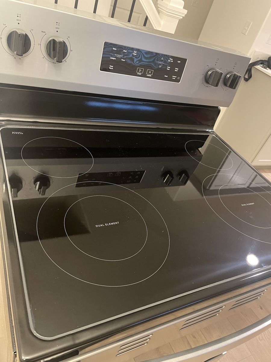 ZelleFlat top electric stove/oven, never used, came with newly built home. 30” width, 25” depth. Pickup only in Salem.