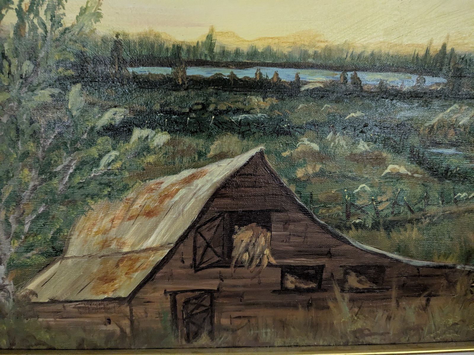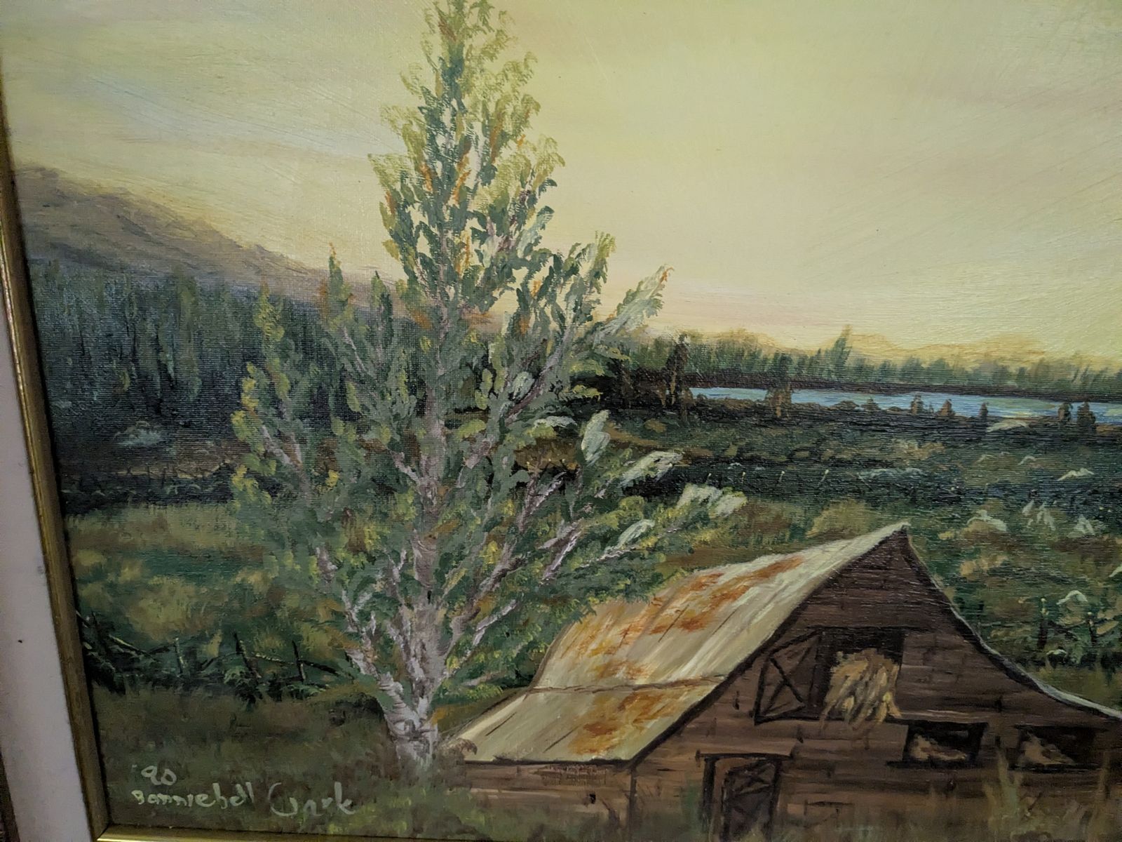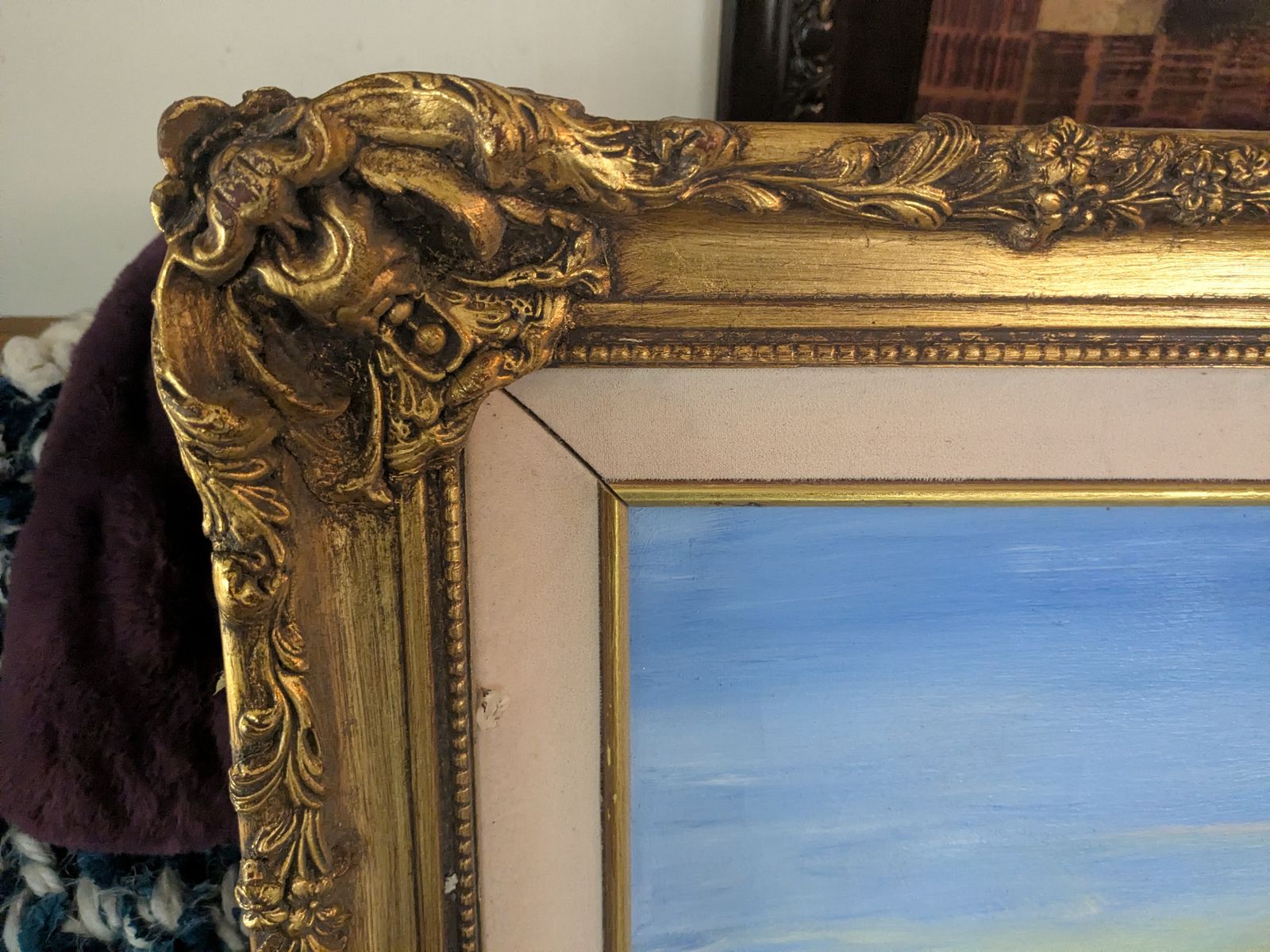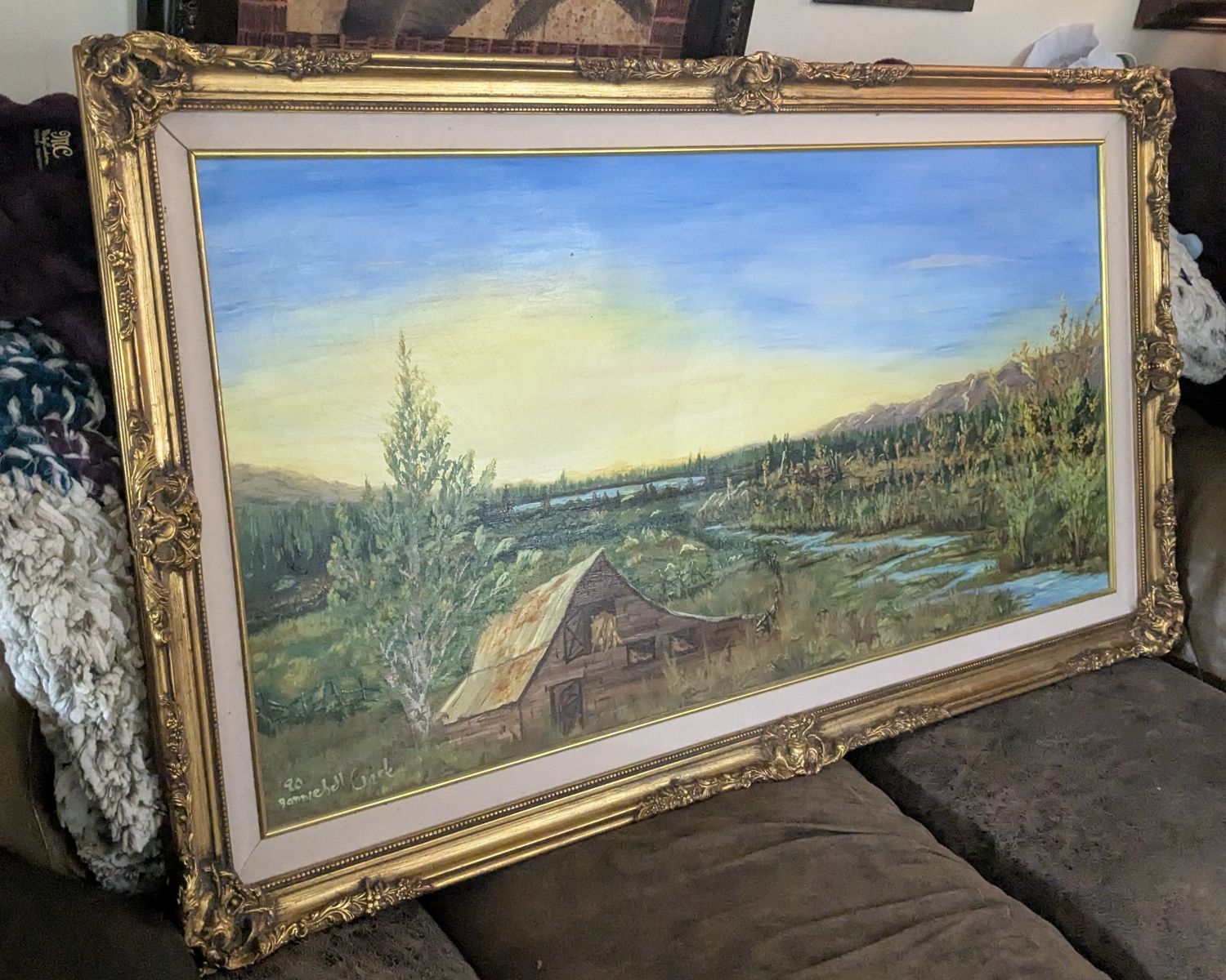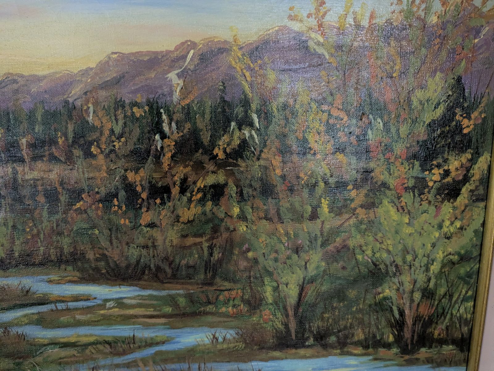 55x31: Original oil landscape painting on canvas. Elegantly framed artwork piece