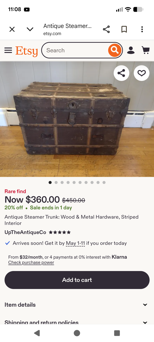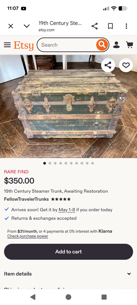 Antique Steamer Trunk in good condition for age. Sturdy and all hardware intact. Would look great refurbished