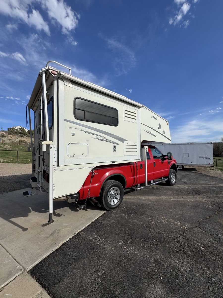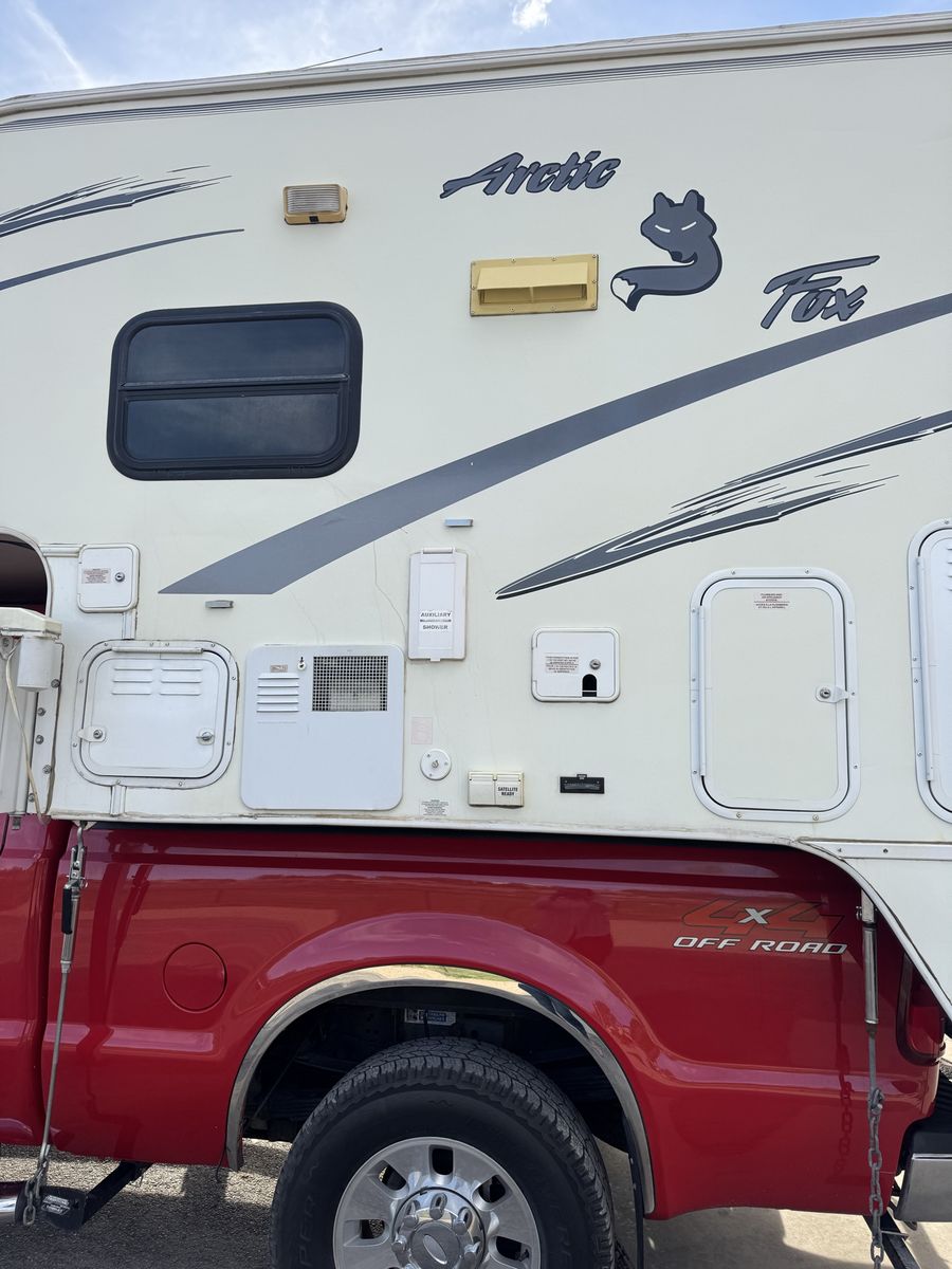2004 Artic Fox Camper in great condition. The 2004 Arctic Fox 860 is an 8'6" aluminum-framed, four-season truck camper with one slide-out, typically requiring a 1-ton pickup. It features a dry weight around 3,000–3,400 lbs, a 46–59 gallon fresh water tank, and a wet bath. It is designed for long-bed trucks and often features a queen bed, dinette slide, and extensive winter insulation