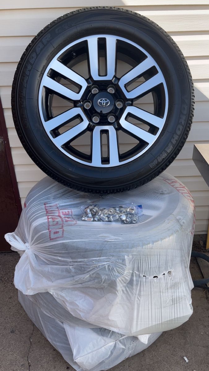 Selling a complete set of (4) OEM Toyota Limited wheels and tires taken off a 2023 Toyota 4Runner. These 20” factory wheels have a sleek, upgraded look and are in great condition—perfect for replacing or upgrading your current setup.