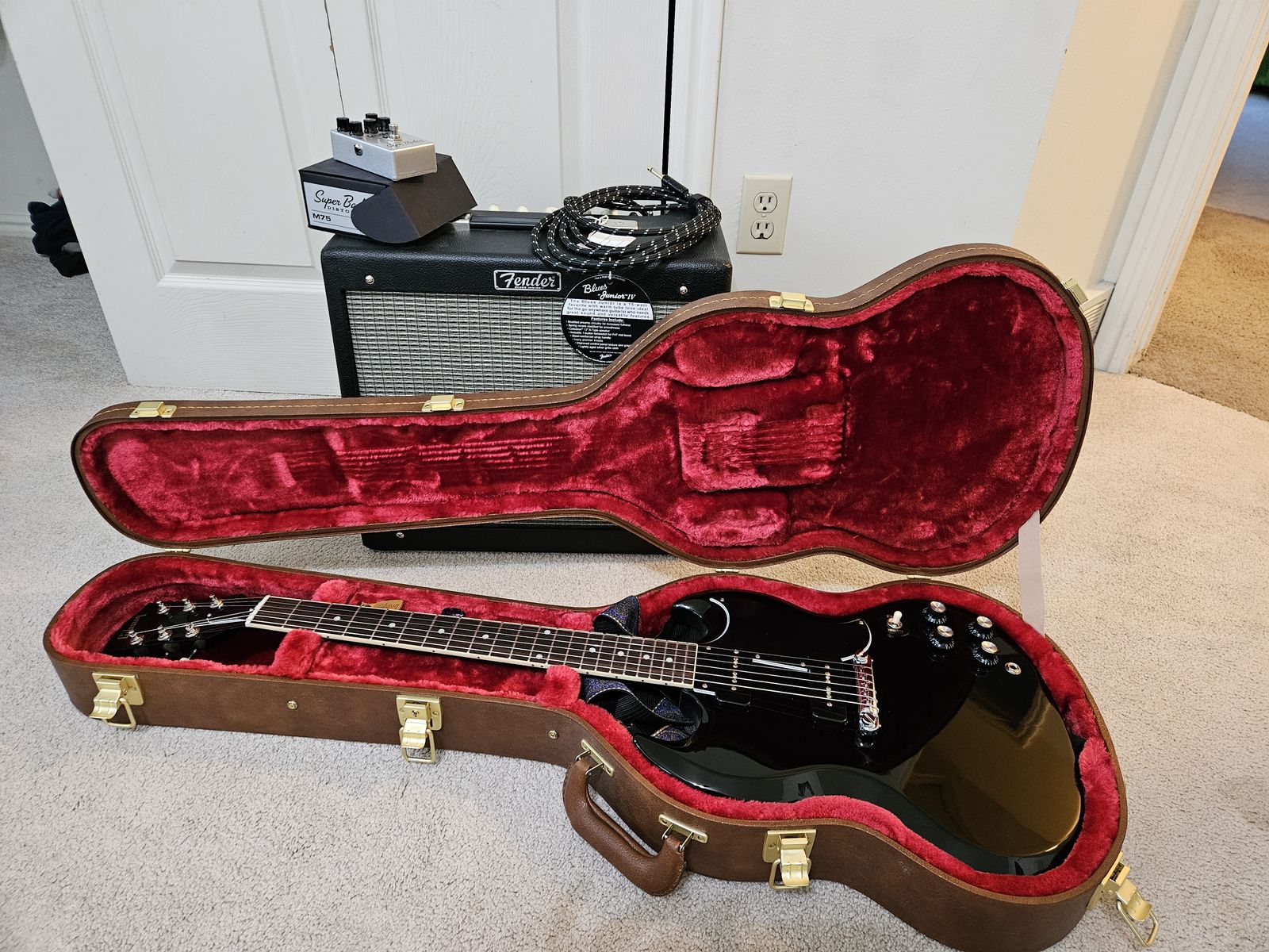 VenmoGibson guitar/fender amp and pedal bundle. Include items mentioned 2 15ft fender straight to right angle cable and 2 guitar straps +more. Less than a year old, hardly any play time. Valued at over $2500