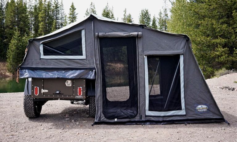 It goes on a trailer, or on a lower truck bed, not on the roof of a vehicle. It needs to be mounted about 44”-45” above the ground so the vestibule portion rests on the ground.