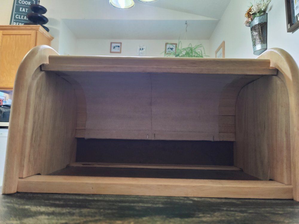 ZelleAdd classic charm and functional storage to your kitchen with this wood roll-top bread box.