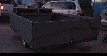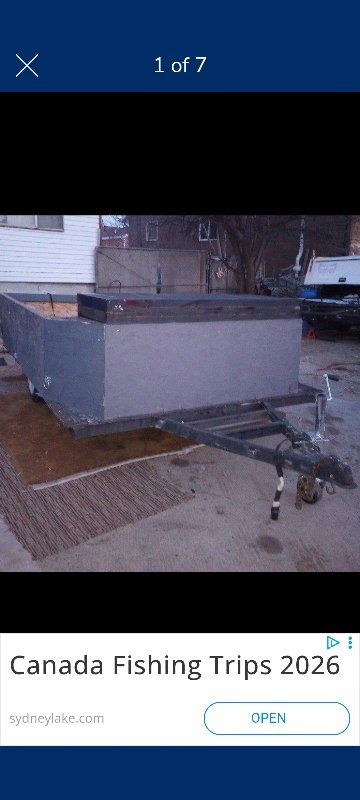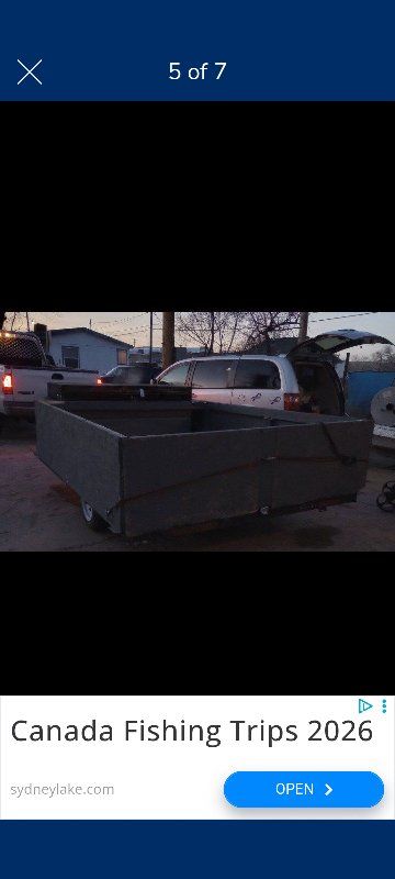 7'5" inside length 6' inside width 6'4" outside width 7'9" outside length PLUS 2'3" toolbox area plus 3'9" tongue 13'9" total overall length $399.00 Text or call Ron texting is best 801-661-1338