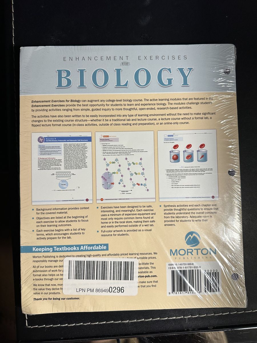 ApplePayPrinted Enhancement Exercises for Biology by Byron J. Adams and John L. Crawley. Great for introductory college-level biology classes. Still in original packaging. Can send the PDF to the textbook upon request. Price negotiable
